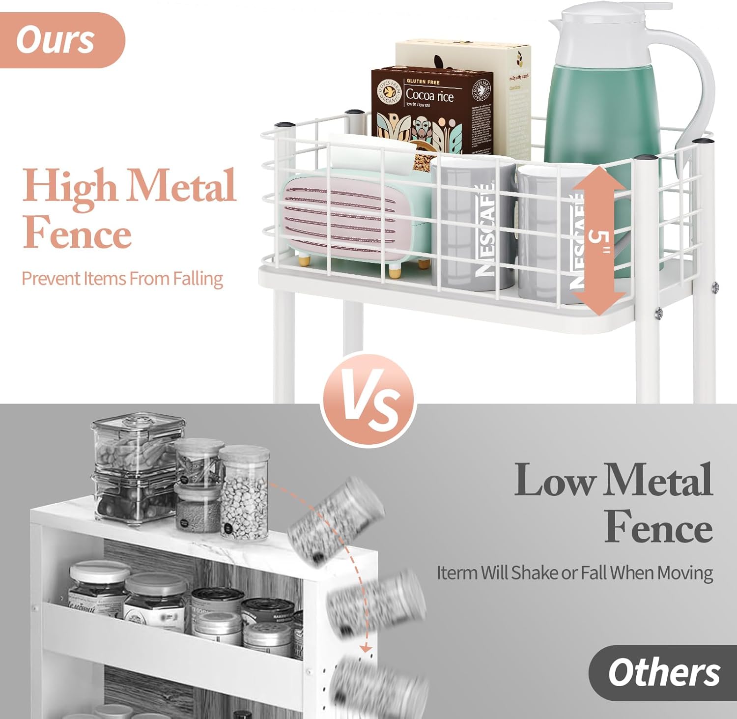 • 【HIGH MESH GUARDRAIL Design】The rolling cart features a high mesh design, providing added height to prevent items from falling off. This utility cart ensures secure storage for all your items. You can display your photos on top of the mesh to add fun to daily life.You can discover more storage solutions and interesting ideas in the process of using this cart.