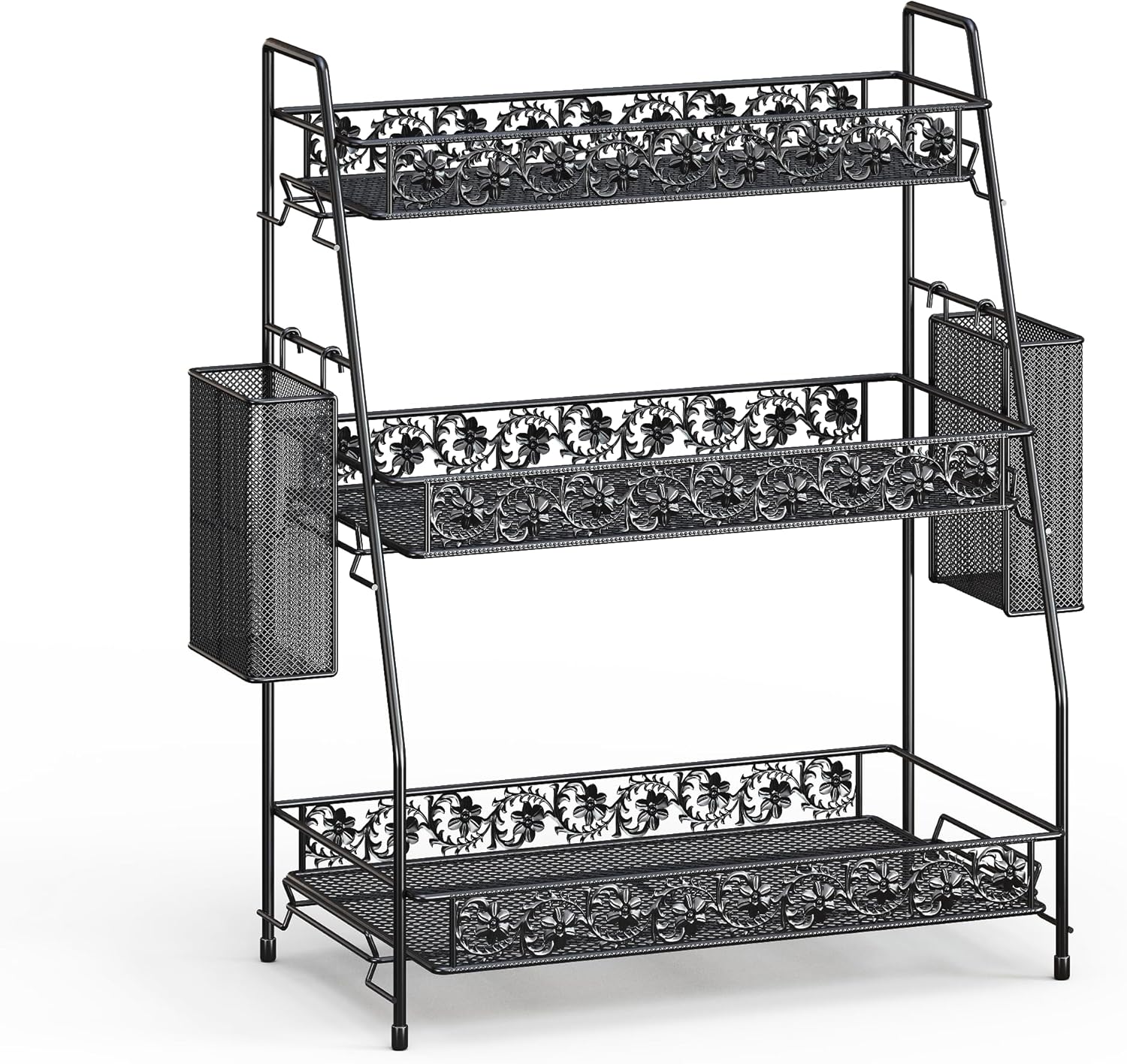 • 【Advantage】Easy to Assemble & 2 Additional Metal Baskets Equipped. 3-tier Countertop Organizer Simple Assemble and Requires no Tools for Installation, just take a few minutes and done.【3 Tier Storage Rack & Handy Organizer】the 3 Shelf Rack Countertop organizer is can accommodate more items and give you a neat countertop.