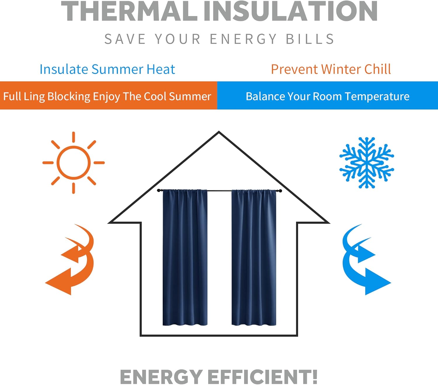 • ENERGY SMART - Curtains are work well on balance the temperature inside and outside by insulating summer heat and winter chill, so that these room darkening curtains can reduce the energy waste and save the daily bill effectively.