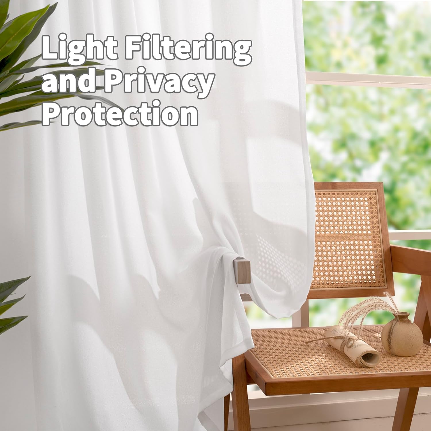 YoungsTex White Linen Semi Sheer Curtains 108 Inch Length 2 Panels, Light Filtering Window Drapes Extro Long for Living Room Bedroom, 40 X 108 Inch
