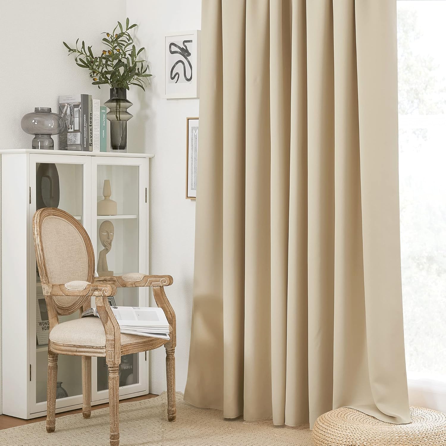 RYB HOME Blackout Curtains for Living Room, Large Window Shades for Bay Window Dining Parlor Bedroom Patio Door, Wide 34 x Long 80 inches, Biscotti Beige, 2 Panels