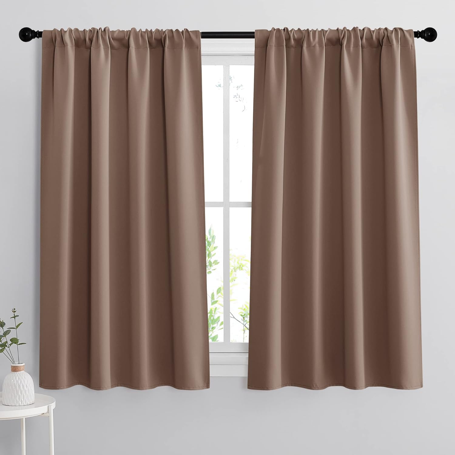 RYB HOME Curtains for Bedroom 63 inches Long, Blackout Thermal Insulating Window Treatment Drapes for Living Room Bathroom Basement Laundry Classroom, W 34 x L 63, Mocha, 2 Panels