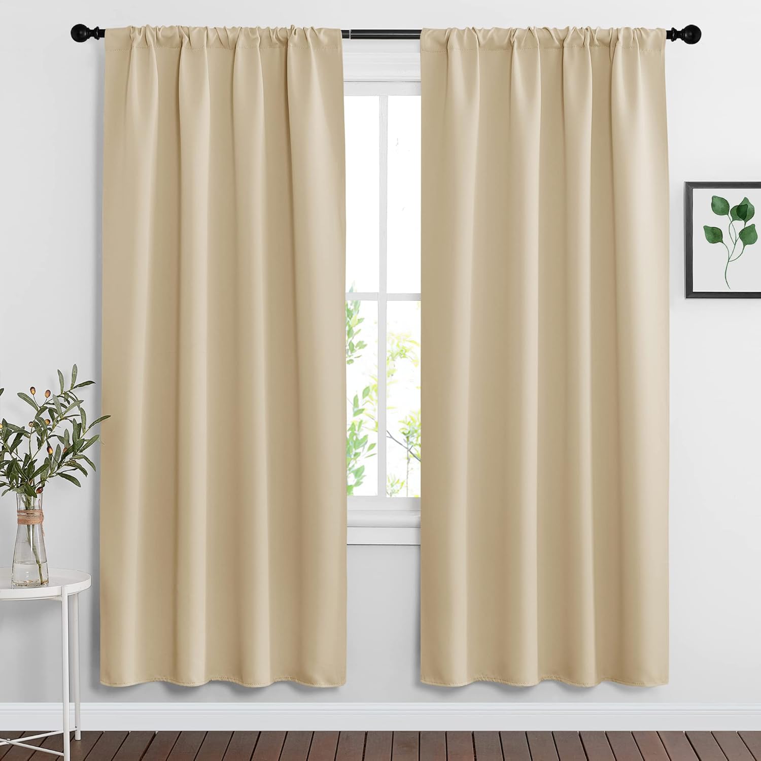 RYB HOME Blackout Curtains for Living Room, Large Window Shades for Bay Window Dining Parlor Bedroom Patio Door, Wide 62 x Long 72 inches, Biscotti Beige, 2 Panels
