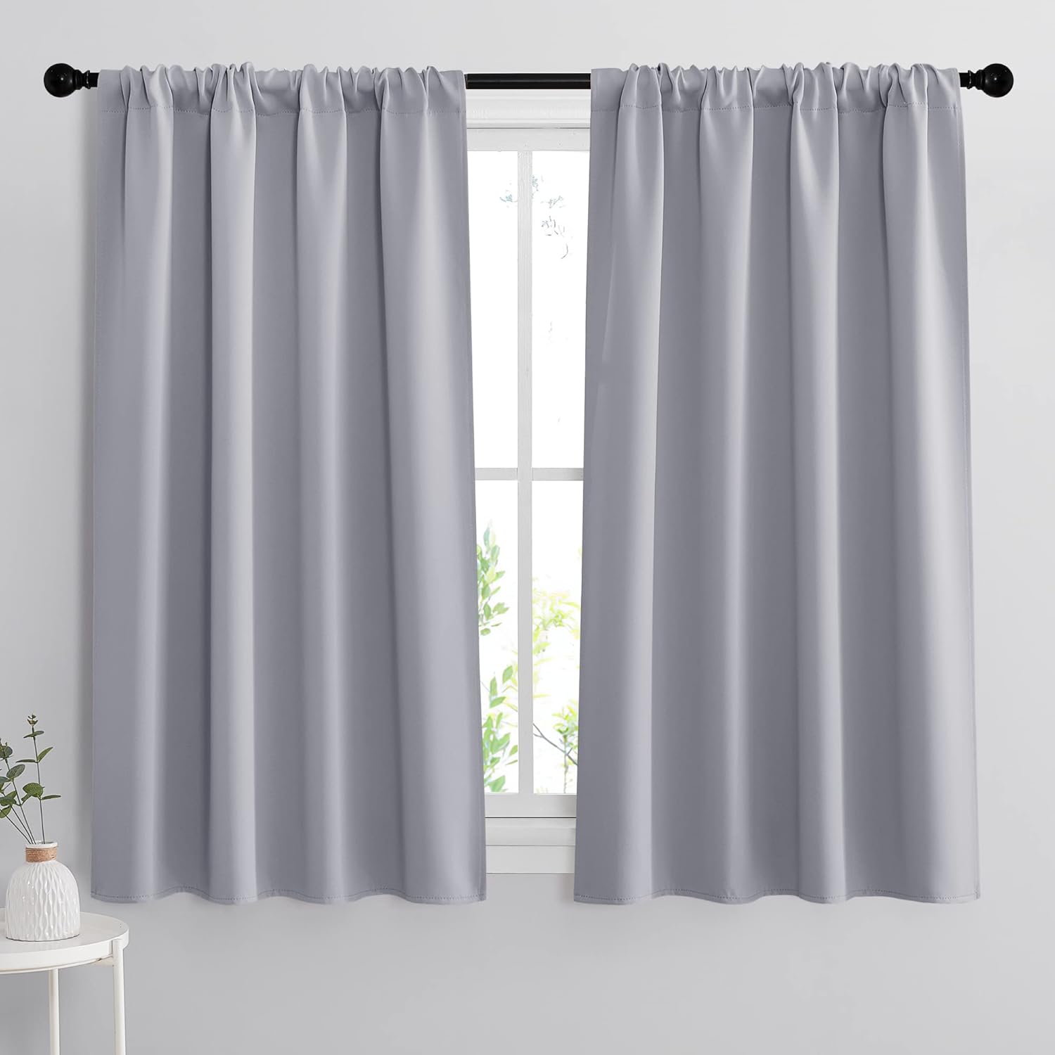 RYB HOME Curtains for Bedroom 63 inches Long, Blackout Thermal Insulating Window Treatment Drapes for Living Room Bathroom Basement Laundry Classroom, W 34 x L 63, Silver Grey, 2 Panels