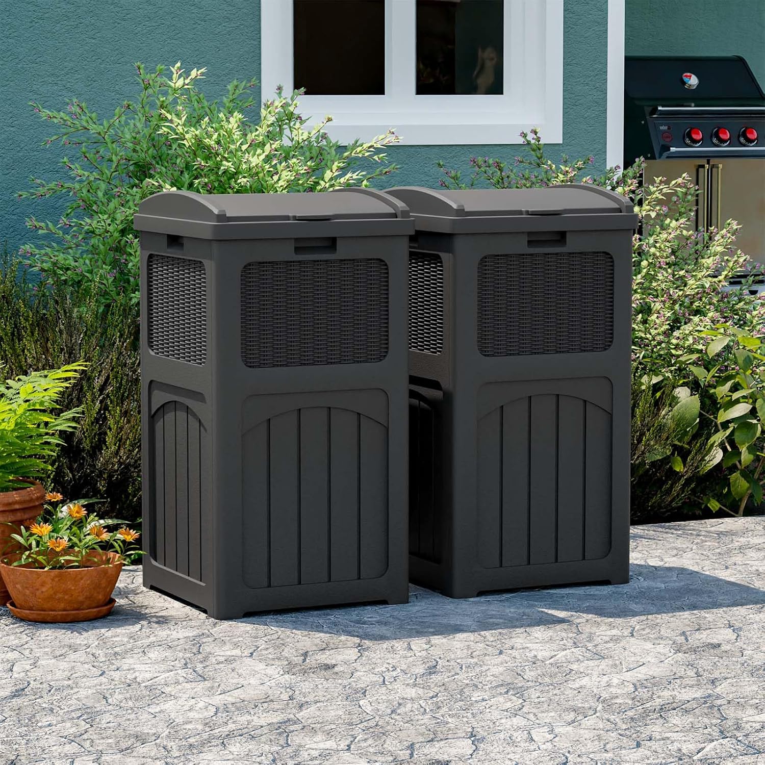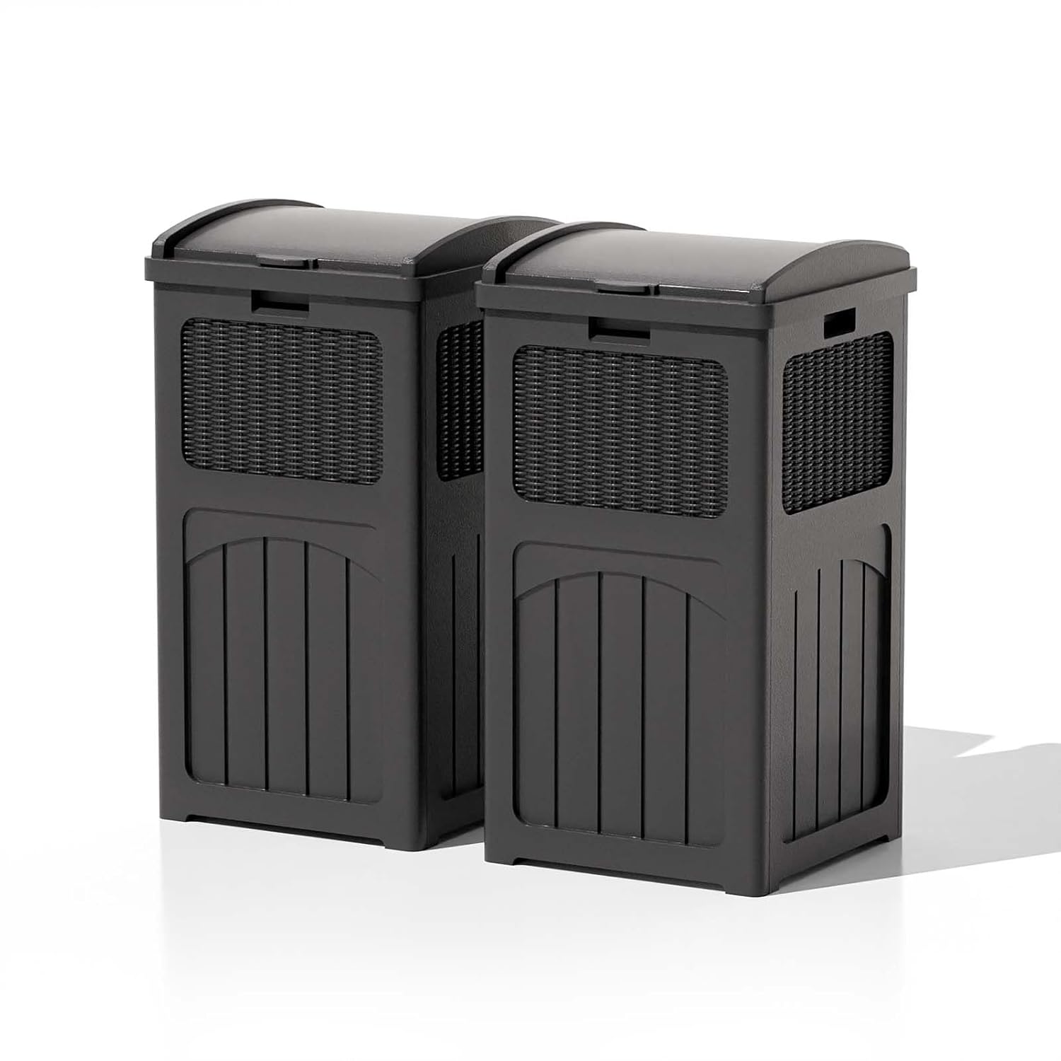 Patiowell 36 Gallon Outdoor Trash Can, Resin Outdoor Garbage Can with Lid for Patio, Backyard, Deck, Black (2 Pack