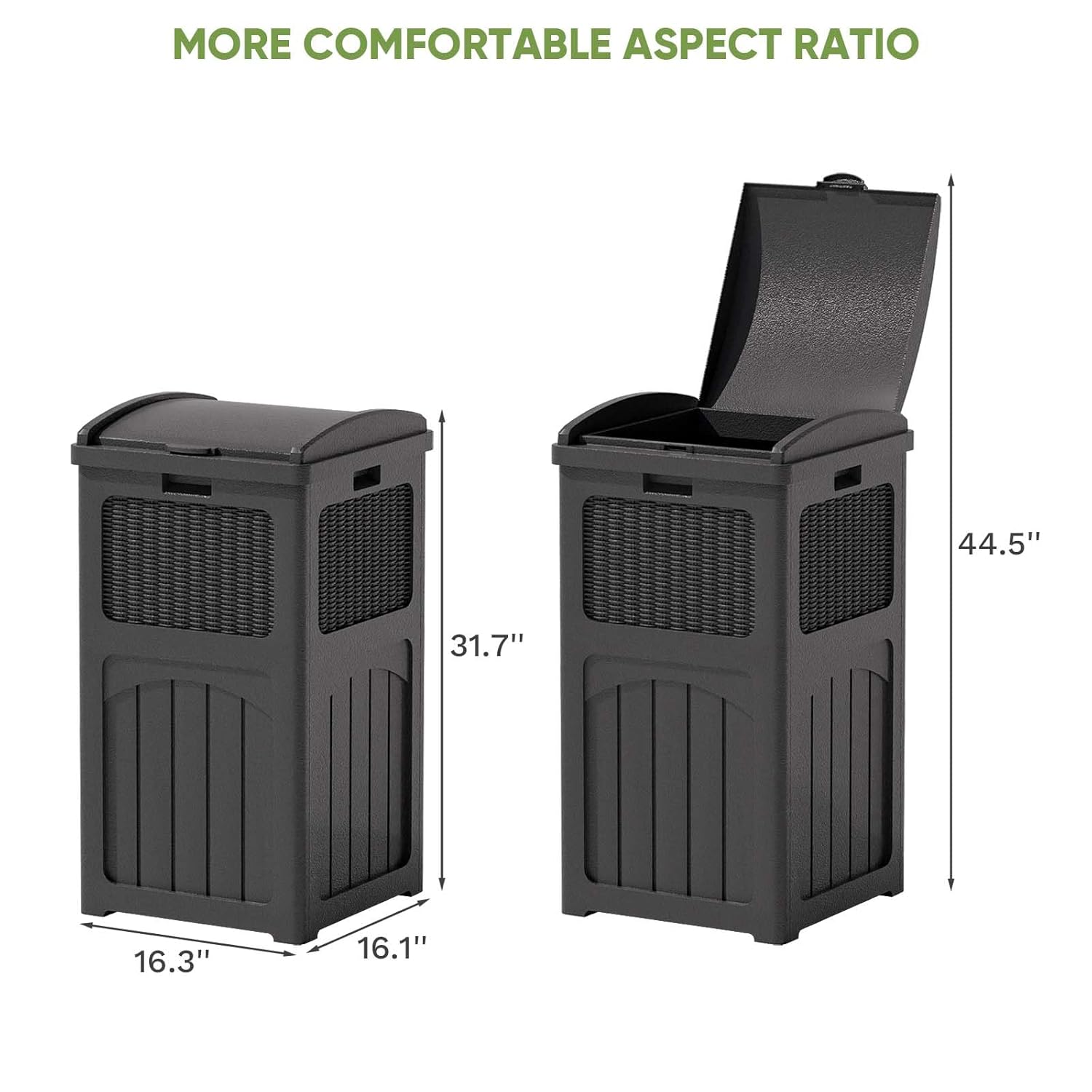 • Stylish appearance: With wicker design on the outside, it can be placed on any deck or patio, and can also be matched with other furniture.The wide range of colour variants gives you more options for integrating the bin into your home style.