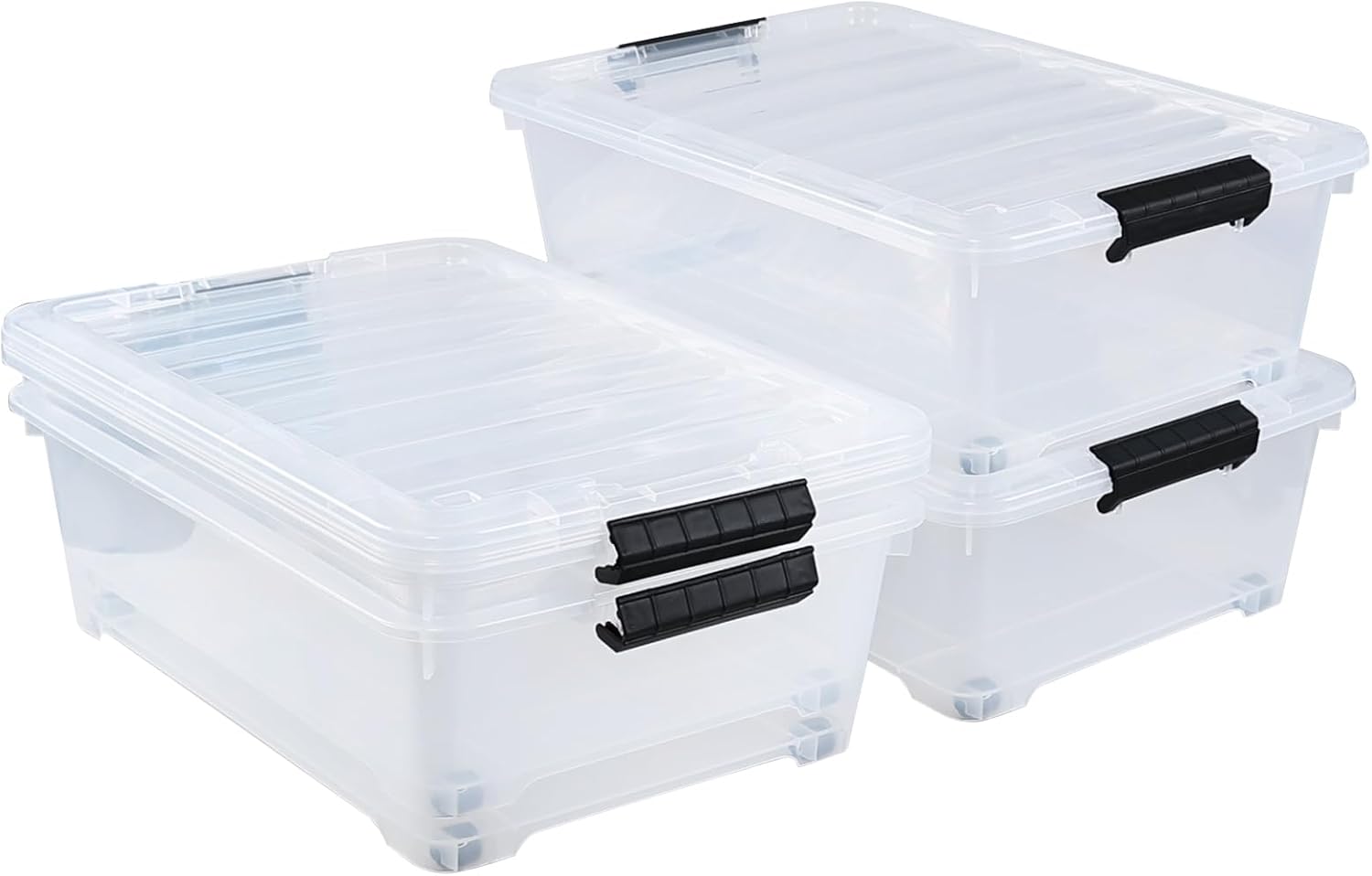 20 Quart Under Bed Plastic Storage Bins, 4-Pack Clear Under Bed Storage Box with Wheels