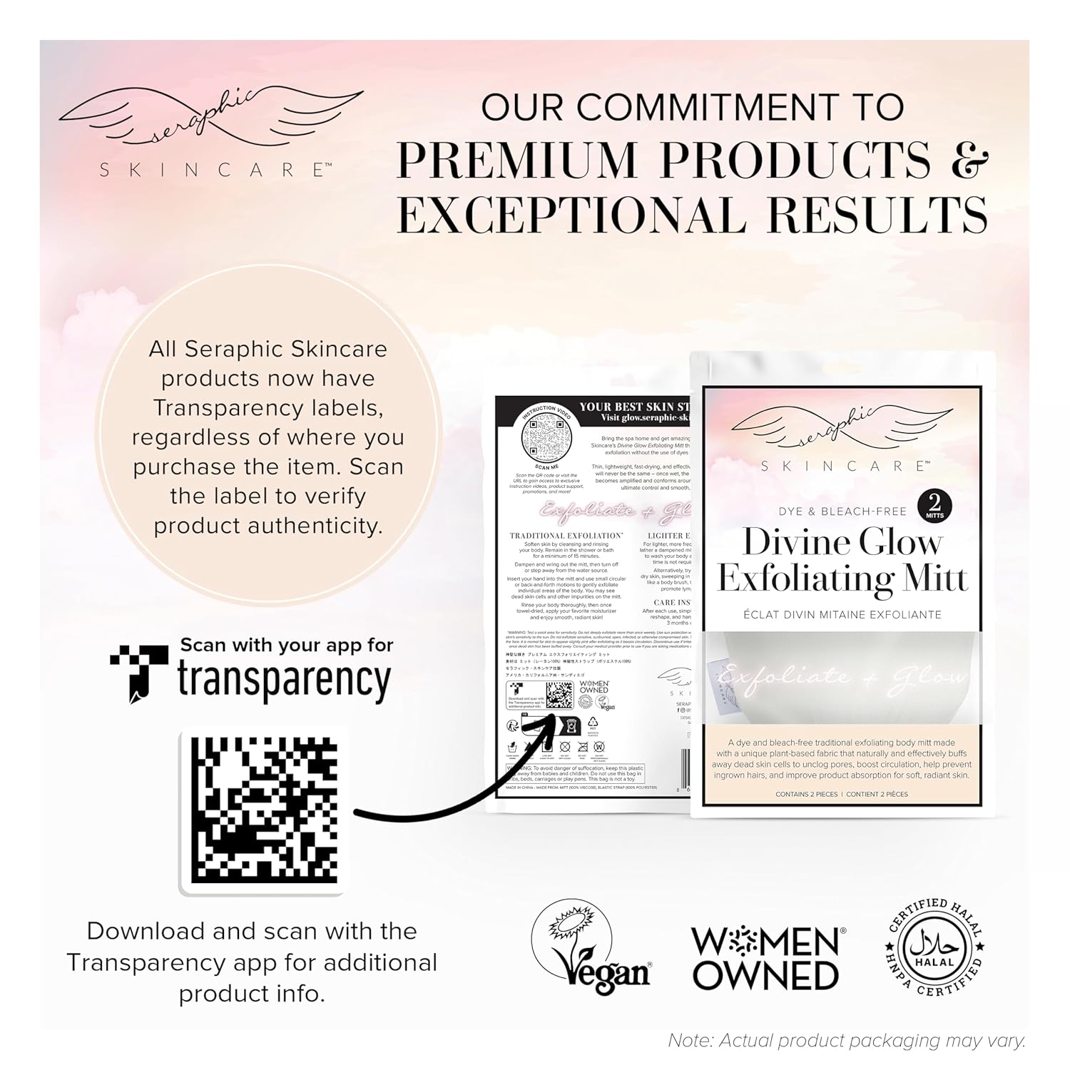 Seraphic Skincare (Original) Divine Glow Exfoliating Mitt (2pcs) – 100% Vegan Viscose Traditional Body Scrub Glove Kessa Korean Washcloth – Body Exfoliator for Self-Tan Removal & Keratosis Pilaris