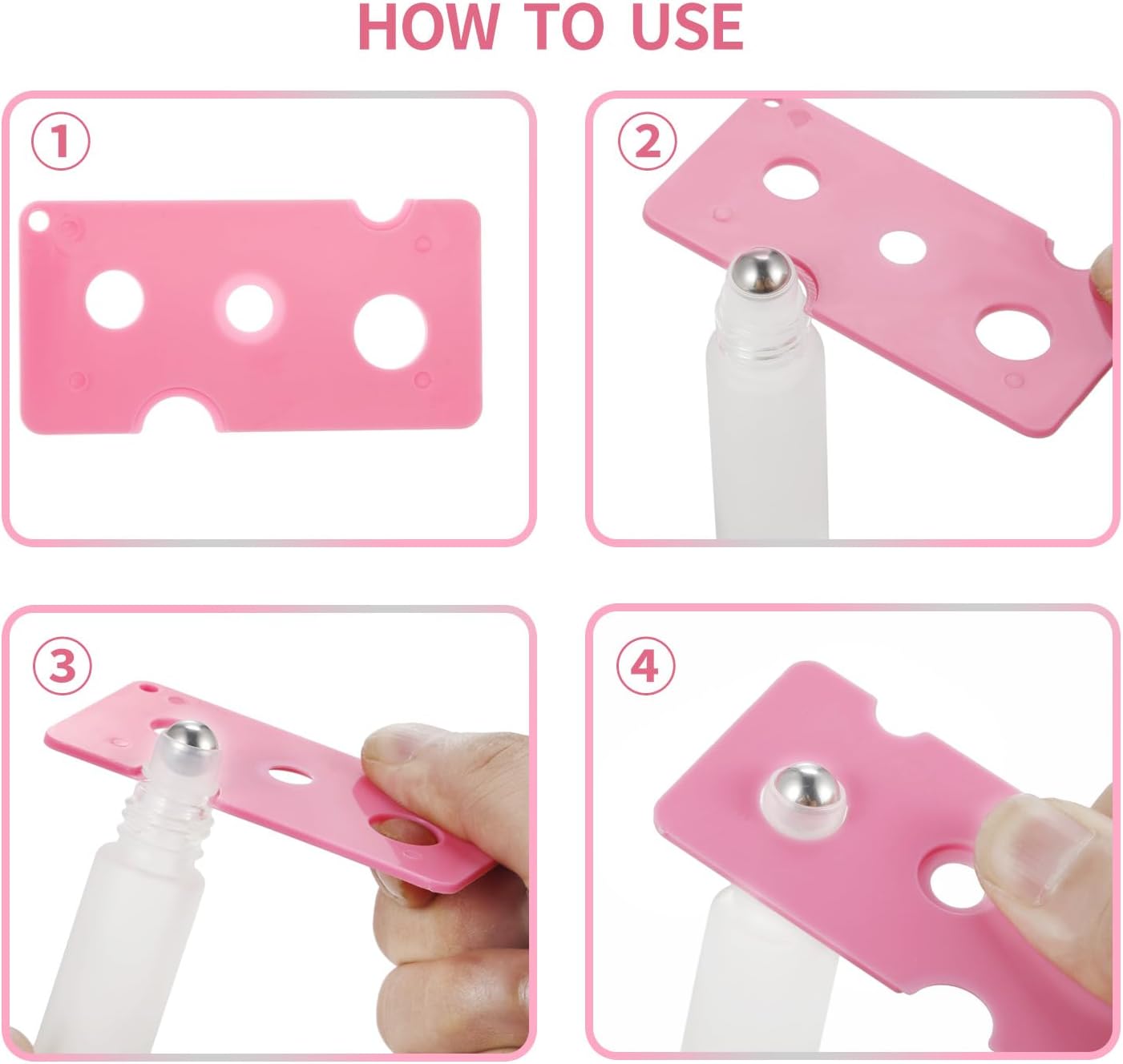 • 【Package included】: 12pcs roller ball bottles in clear frosted design, the capacity is 10ml(0.34oz),2 pcs roller openers,2 pcs plastic funnels,2 × Droppers,2 pc pressure pump transmission tools, 2 pcs spare roller balls for your use.