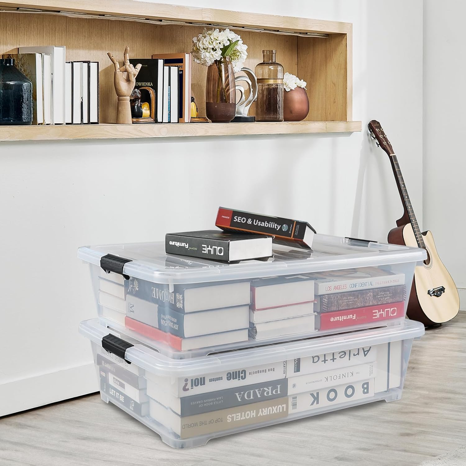 50 Quart Clear Plastic Under Bed Storage Bin with Lid, Underbed Storage Container with Wheels, 3-Pack