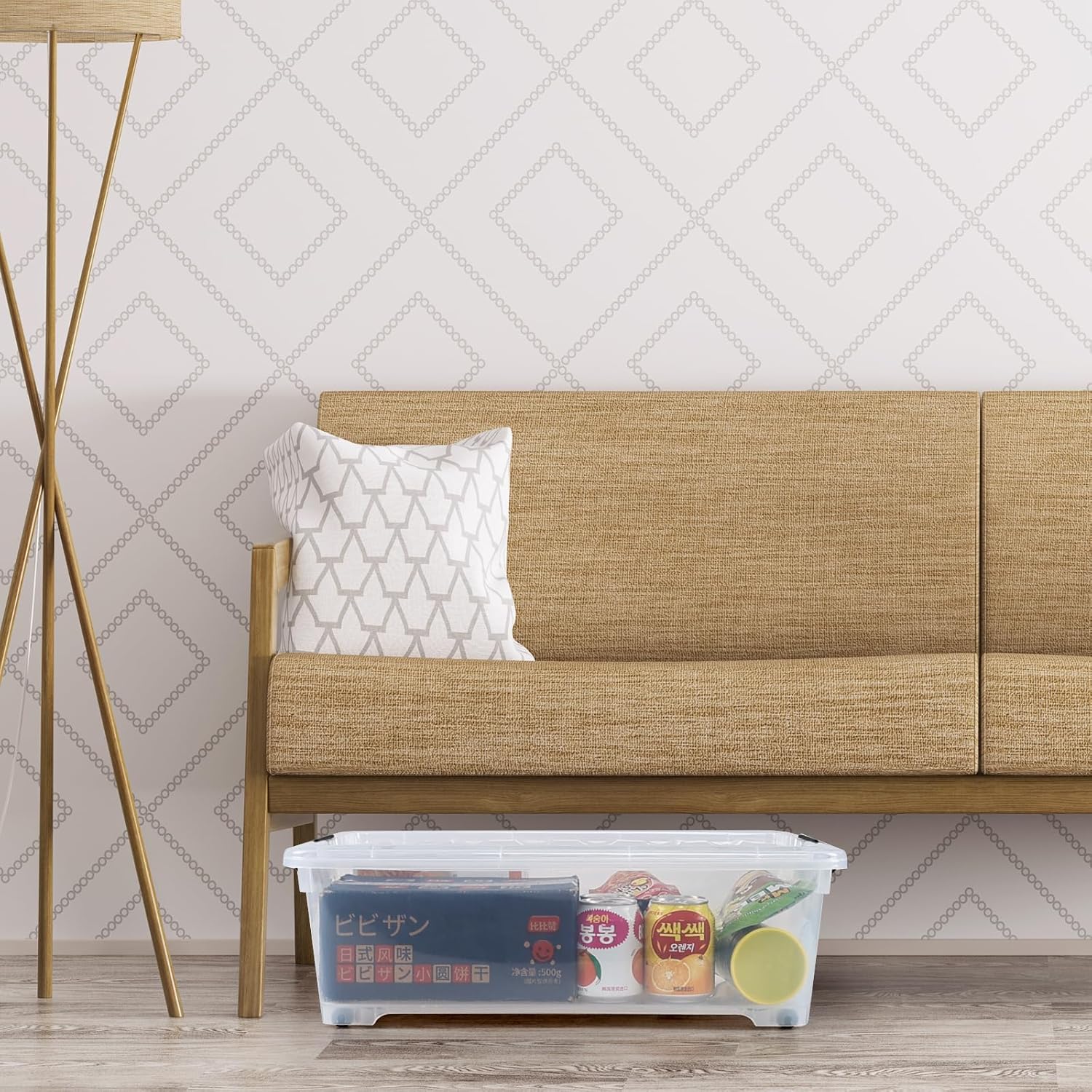 20 Quart Stackable Plastic Under Bed Bins with Lid, Set of 4 Clear Latch Storage Container with Wheels