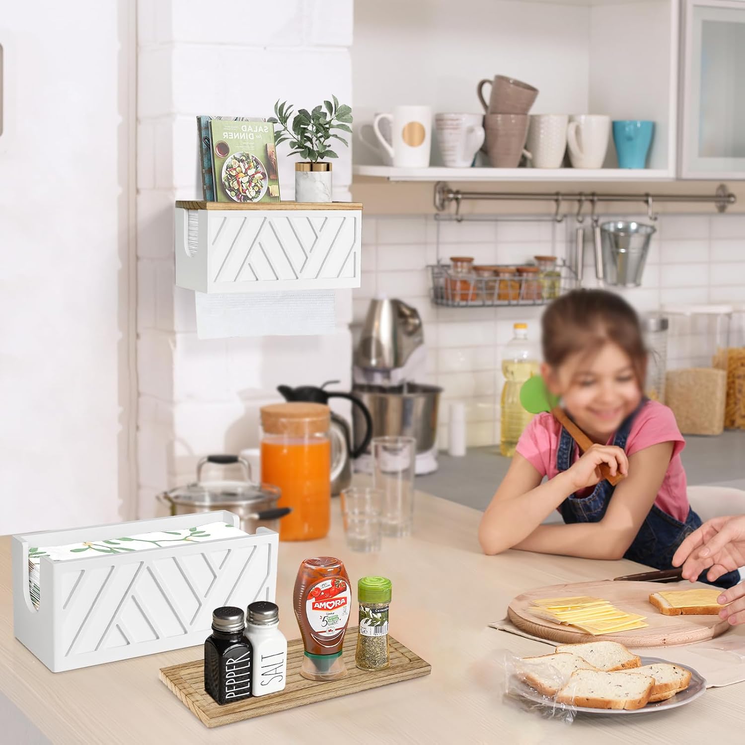 • 【Sturdy & Durable Paper Towel Dispenser】This farmhouse paper towel holder wall mounted is built with excellent quality 100% natural solid wood. Food grade safety coating, harmless and odor-free, safety enough to store c-fold, z-fold, trifold hand towel, paper towel, napkin for kitchen, bathroom and living room. Our utensil holder organizer is durable and will last for a lifetime