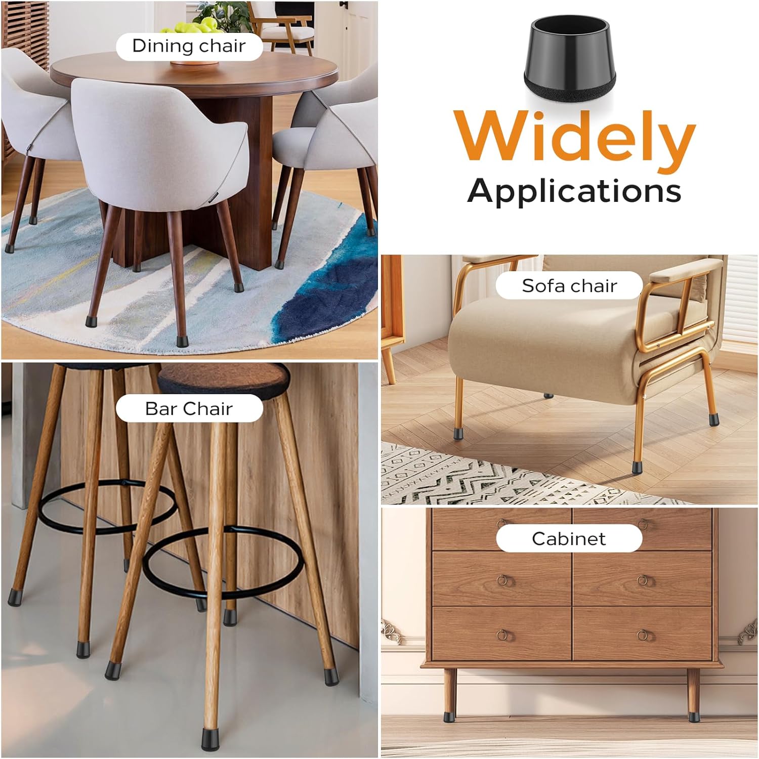 • Enhanced Felt & Wear Resistance- With a 360° fully enveloping felt bottom design and heightened felt thickness, engineered to accommodate various angles of slanted chair legs. Our chair leg floor protectors have a stretch, and elasticity which can maintain longer usage time.