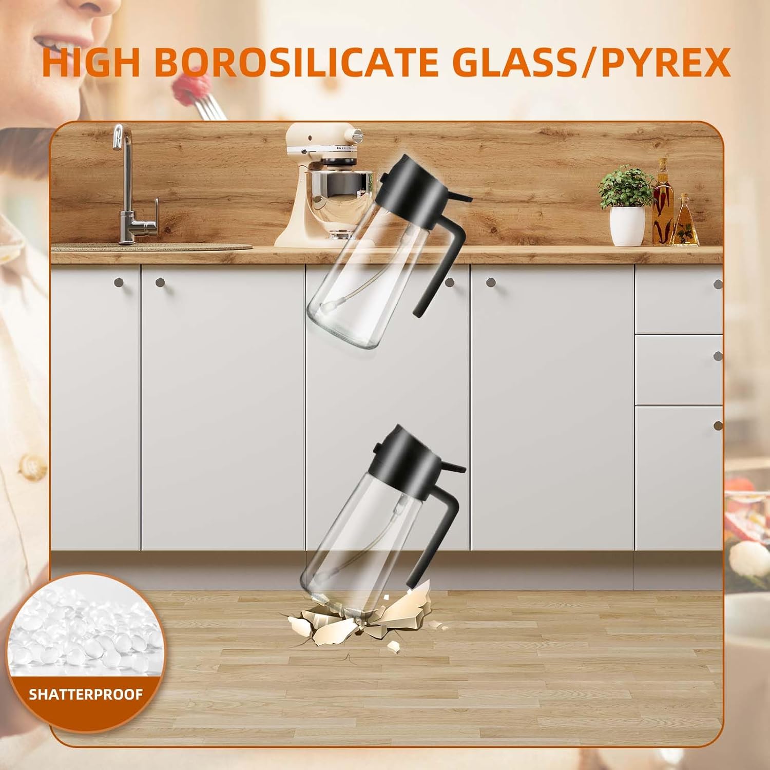 2-in-1 Glass Oil Dispenser & Sprayer - 16oz/470ml Leakproof Bottle for Cooking, Air Fryer, BBQ, Baking, Salad (Transparent Black 1PC)