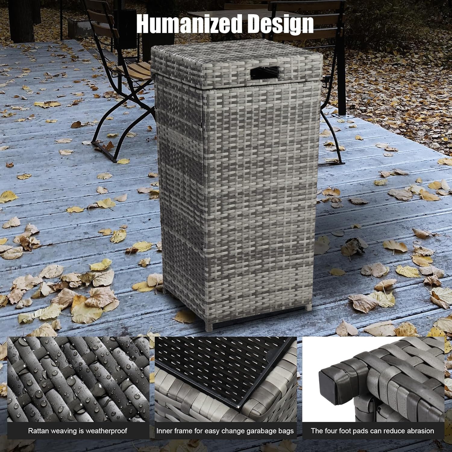 • Durable & Sturdy: Our patio trash can is crafted from UV-resistant PE rattan and a steel frame, ensuring it remains sturdy, stable, and long-lasting