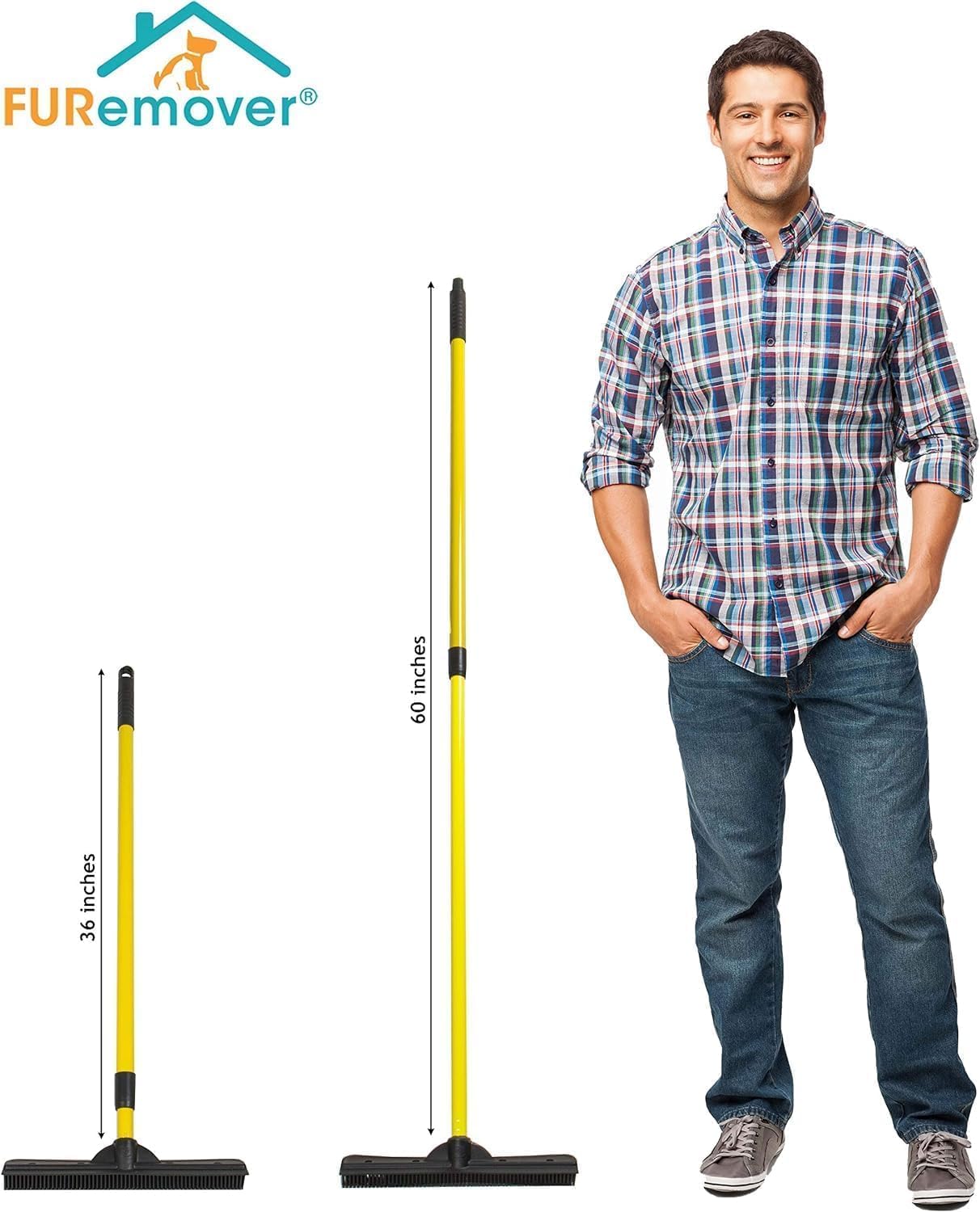 FURemover Original Pet Hair Rubber Broom with Squeegee, with 58” Telescopic Handle for Carpet, Tile and Hardwood and Scrub Cloth Combo