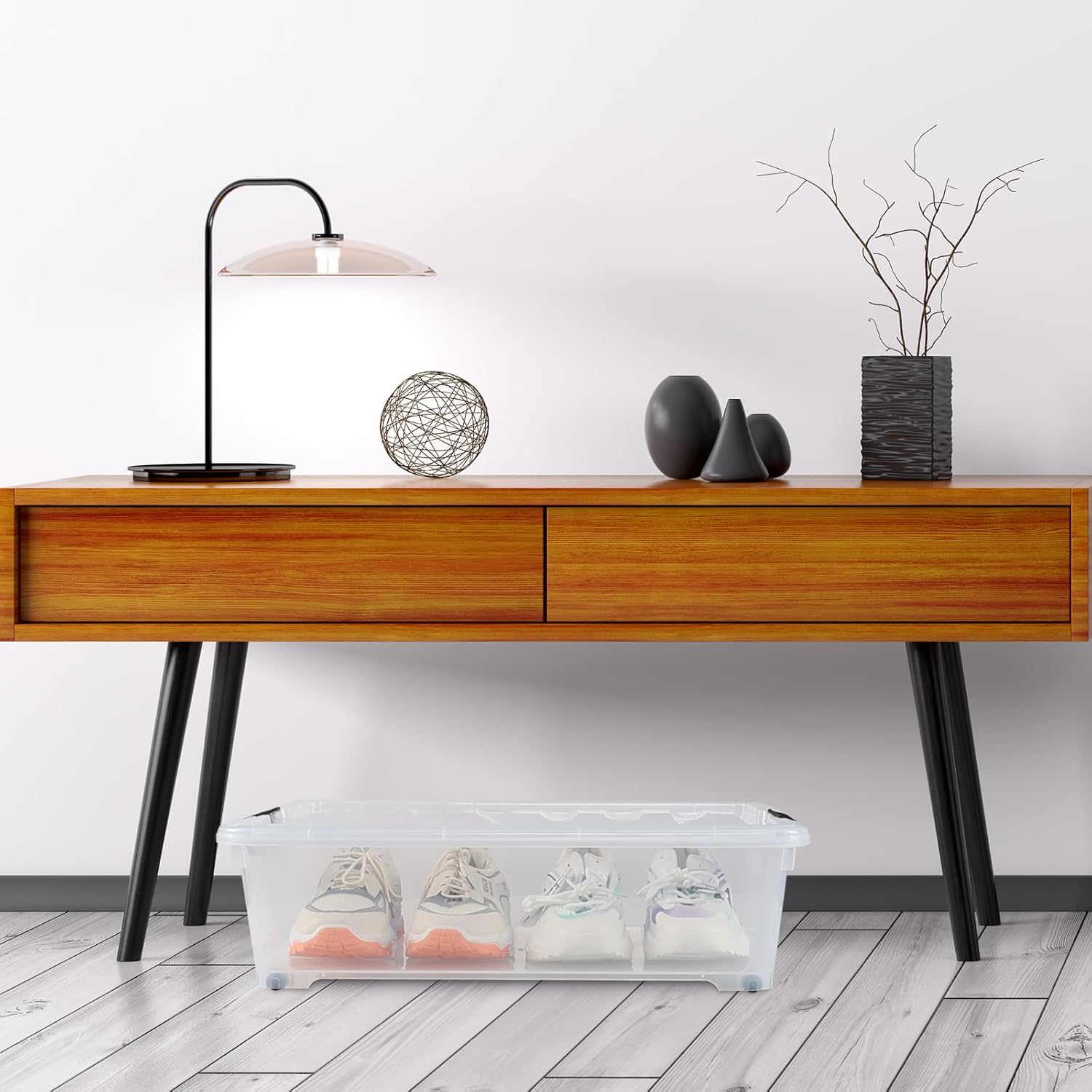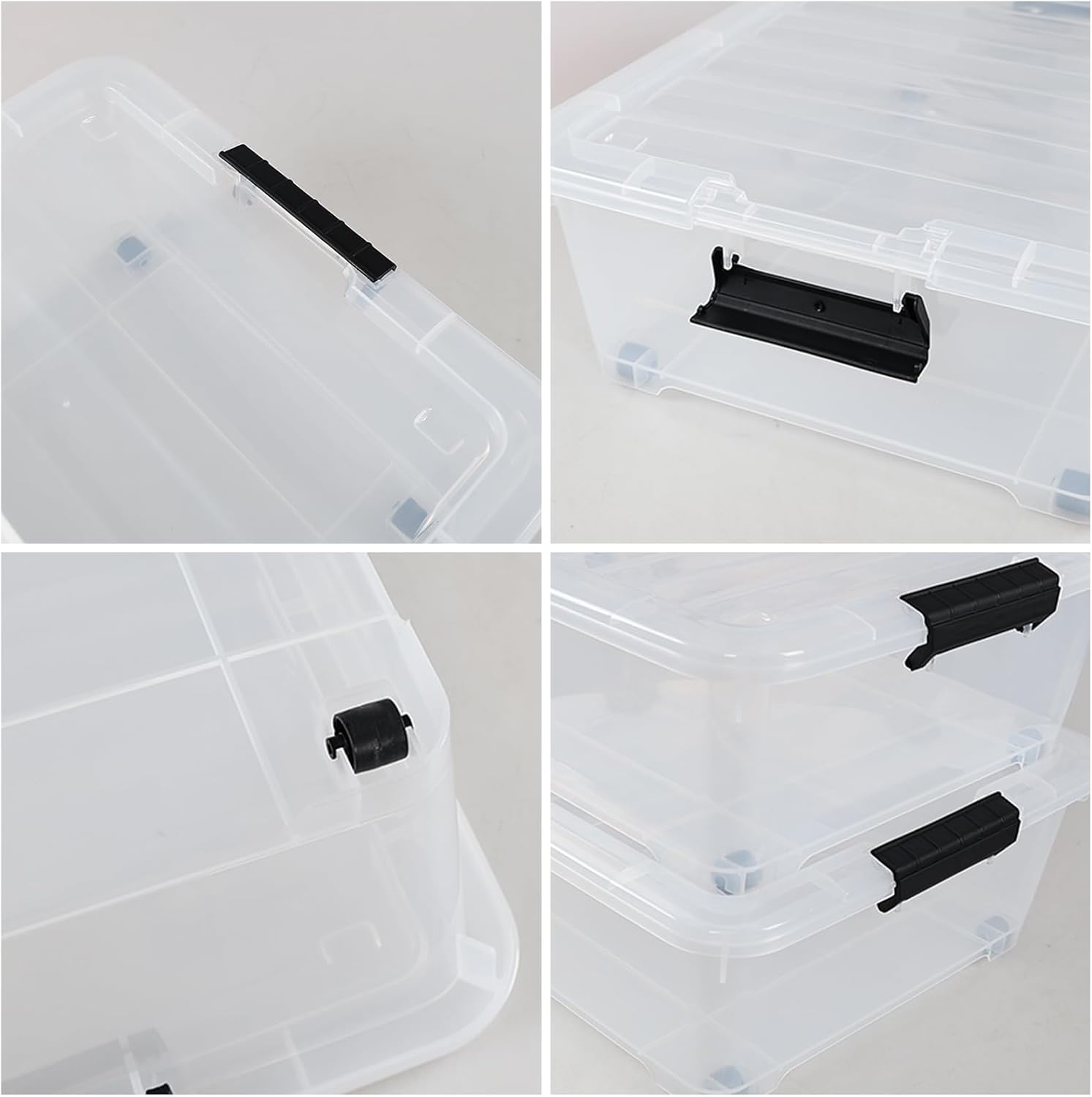 4-Pack 25 Quart Under Bed Plastic Storage Bins, Clear Under Bed Storage Box Container with Wheels
