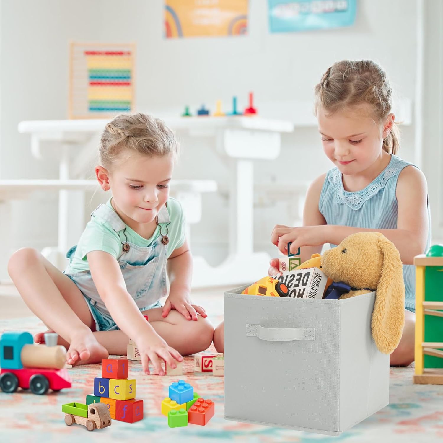 Stero Fabric Storage Bins 6 Pack Fun Colored Durable Storage Cubes with Handles Foldable Cube Baskets for Home, Kids Room, Closet and Toys Organization Gray