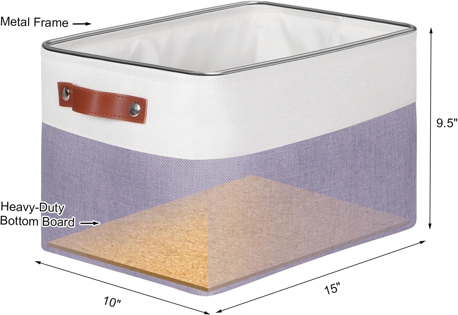 Univivi Large Fabric Storage Baskets Hard Bottom Organizer Bins for Shelves Organizing Foldable Storage Bins with PU Handles for Closet (Purple-4-Pack)