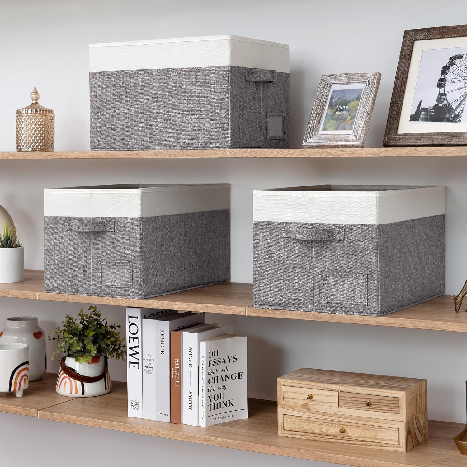 GRANNY SAYS Storage Baskets for Shelves, Fabric Storage Bins for Clothes, Closet Organization Bins, Collapsible Storage Bins with Handles, Decorative Storage Box, Extra Large, 3-Pack