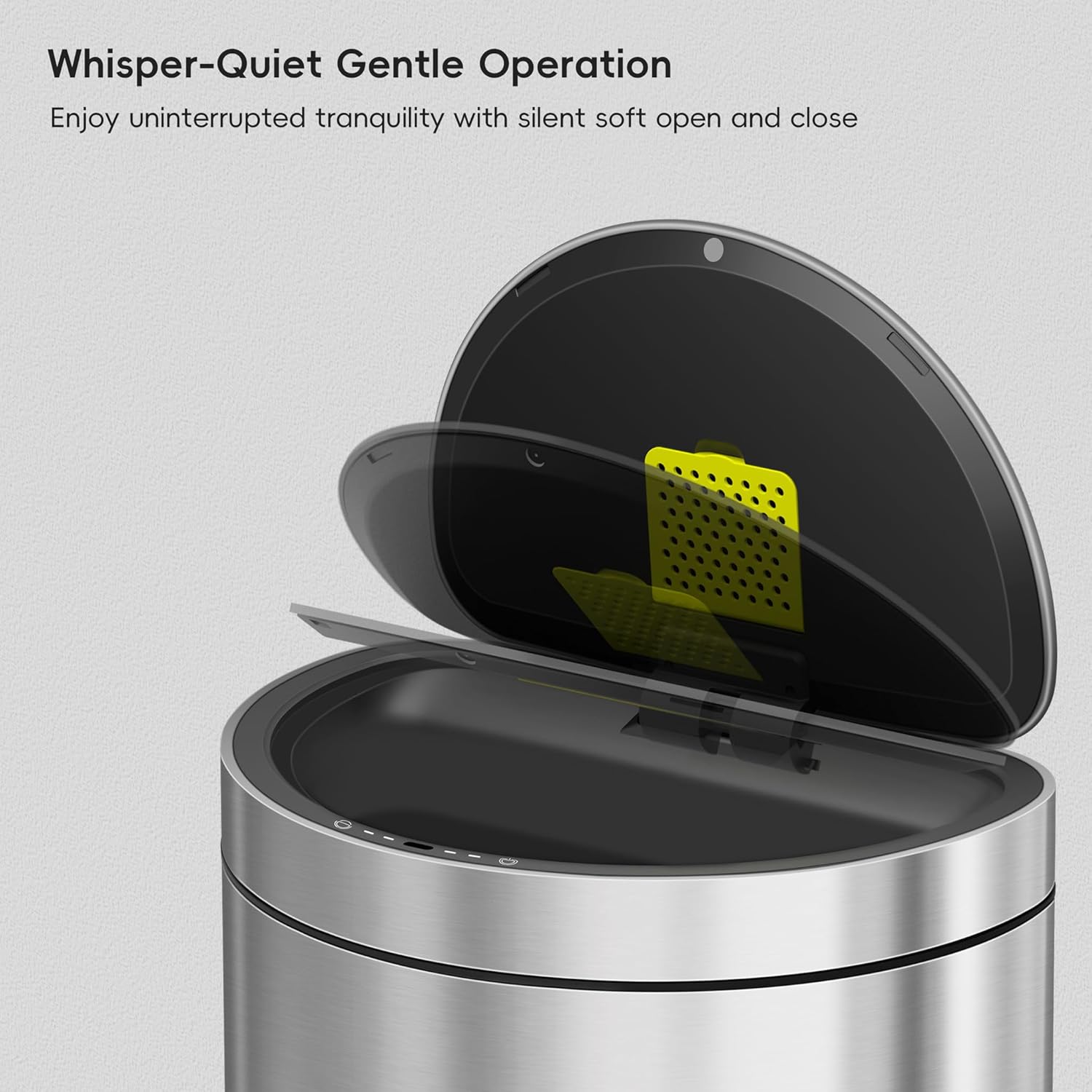 • ULTRA-RESPONSIVE AND WHISPER-QUIET: Experience with EKO touchless trash cans, it features a lightning-fast, 0.2 second responsive openings, and soft-closing mechanisms, followed by gentle, 5-second soft closures.