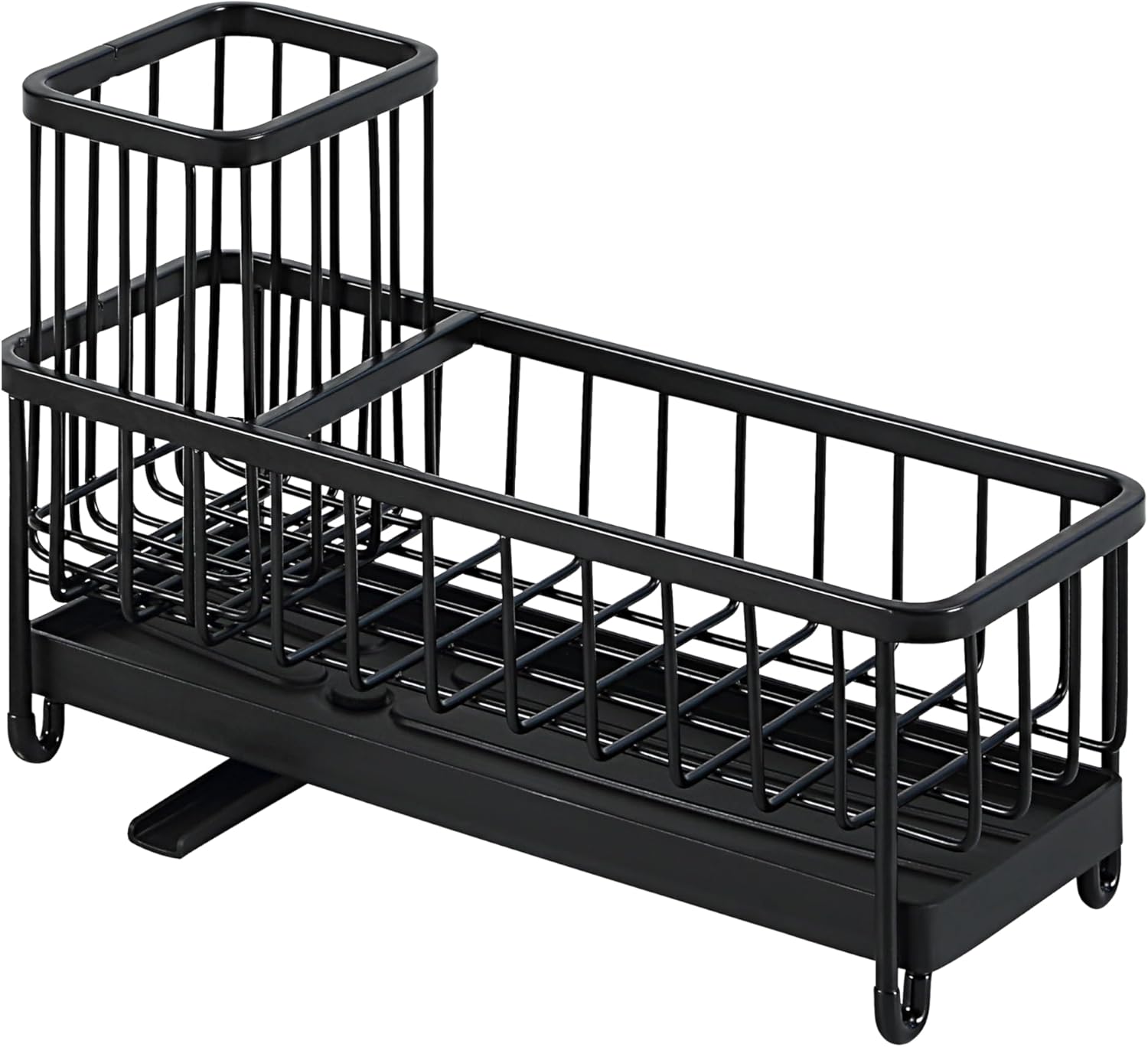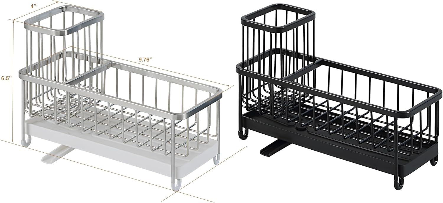 SunnyPoint Never Rust Stainless Utensil, Sink Cleaning Tools Holder for Kitchen Sink With Drain Board; Dish Wand, Sponge, Soap Dispenser, Utensil Organizer Caddy (BLK)