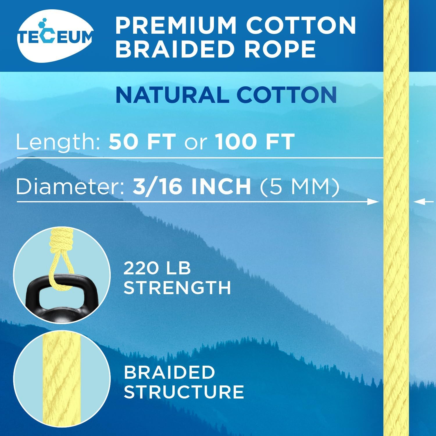 • STRONG & DURABLE: Our cotton cord has minimal-to-no stretching and is capable to withstand a weight of 220 lbs (100kg). Its braided structure ensures that the load-bearing capacity is evenly distributed across the entire rope, which makes it suitable for a wide range of applications. Long-lasting.