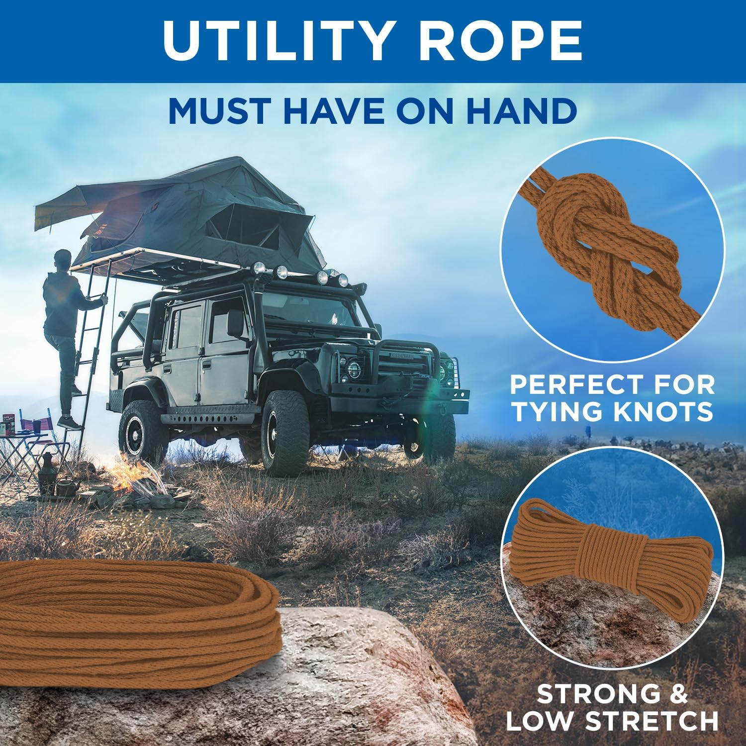 TECEUM Cotton Rope 3/16” (5 mm) – 50 FT – Strong All-Purpose Braided Rope – Natural Cotton – for Crafting, Сamping, Clothes Line, DIY, Indoor & Outdoor Use – Ochre