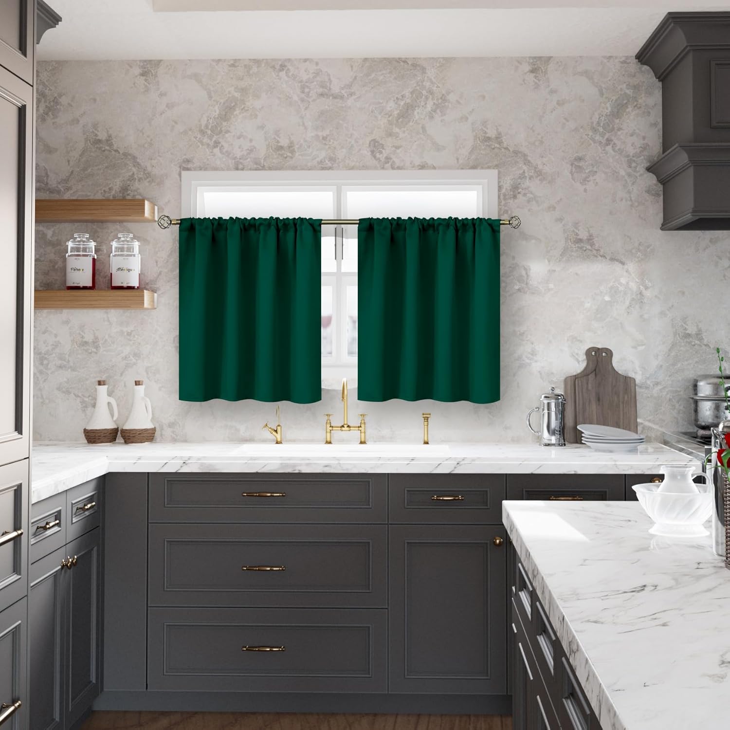 BGment Emerald Green Blackout Curtains 36 Inch Length for Kitchen Window - Short Thermal Insulated Drapes Room Darkening with Rod Pocket for Bathroom Cafe Rv Window, 42 x 36 Inch, 2 Panels