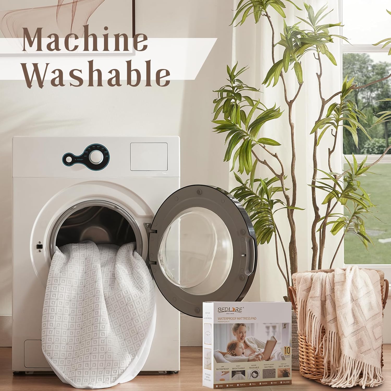 BEDLORE Queen Mattress Protector, Waterproof Noiseless Mattress Cover with Deep Pocket for 6-18 inches Mattress, Soft Breathable Mattress Pad Machine Washable (White)