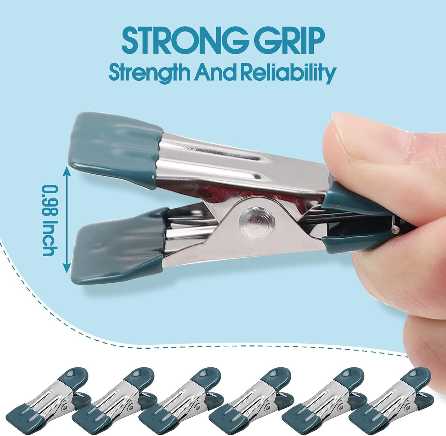 • Strong Grip: These metal bag clips have exceptional grip strength, with a 0.98-inch opening that makes the clothespin sufficiently large and robust enough to hold heavy items such as sweaters and jeans. Even on windy days, clothes will not slip or be blown away