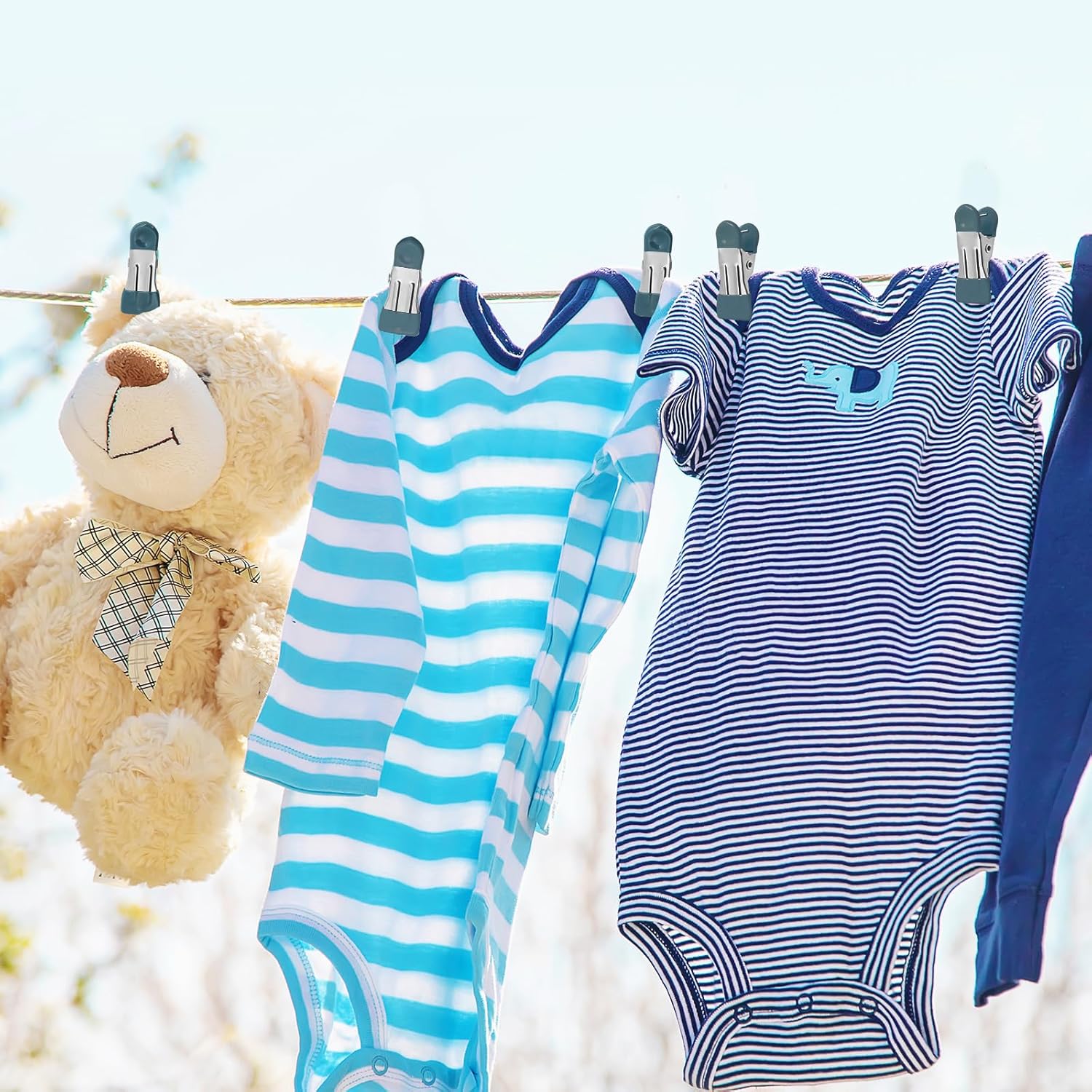 • Quality Material: The metal clothespin is made of quality stainless steel, offering excellent durability and waterproof performance. It is resistant to breakage, deformation, and rust even when exposed to outdoor wind and sun, making it the perfect choice for outdoor clothes drying