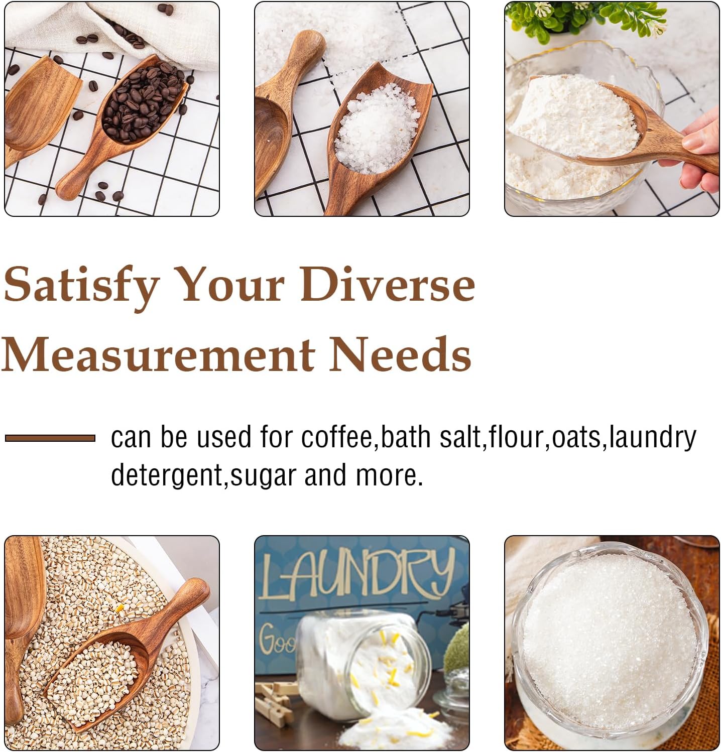 • 【Versatile Wood Scoops】Great scoop for canisters,bath salt,laundry powder,or for dry ingredients such as coffee,sugar,salt,tea,flour,oats and more