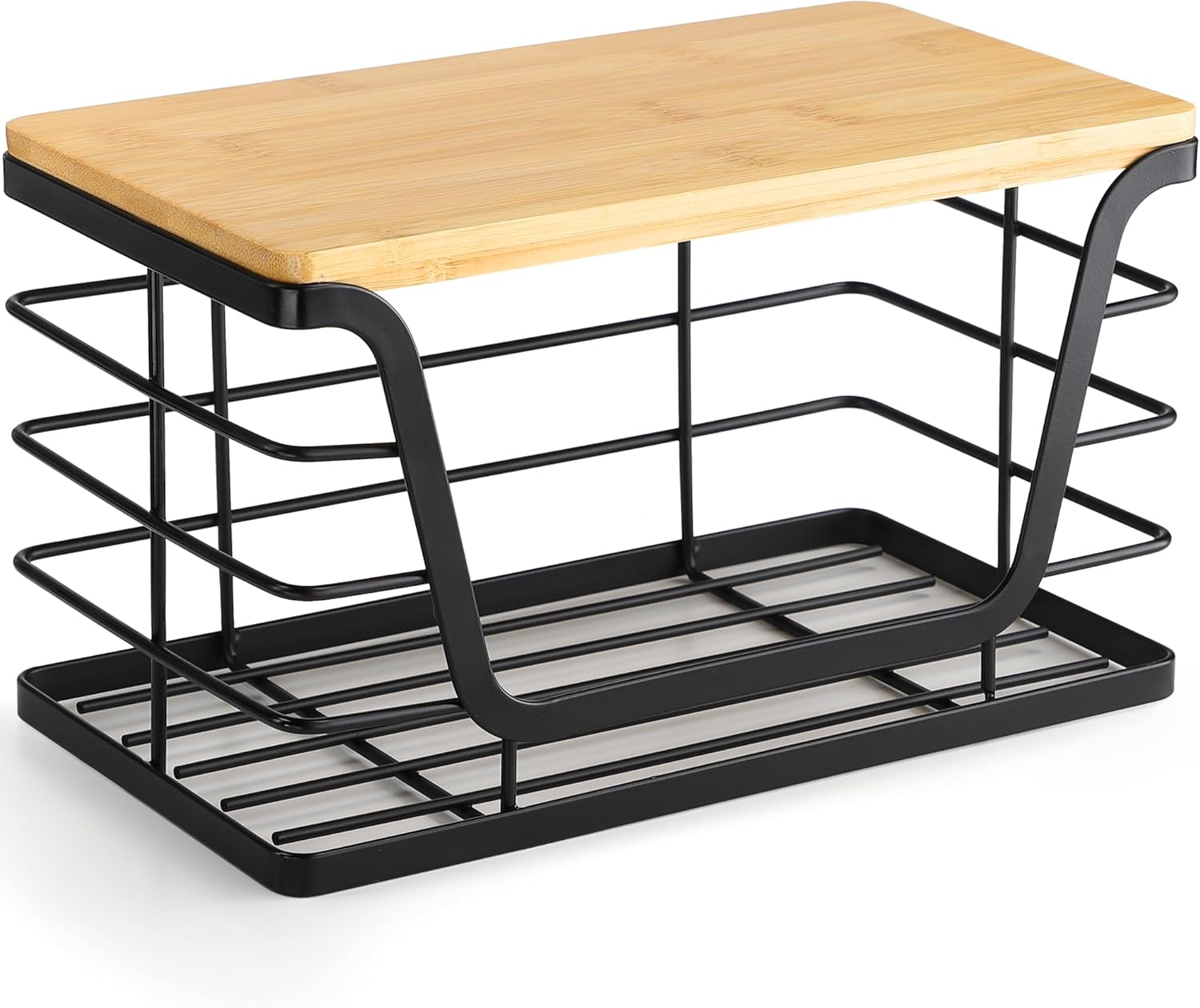 • Material: The storage organizer consists of a sturdy bamboo lid and a smooth-edged stainless steel basket, making it waterproof, rust-resistant, and durable