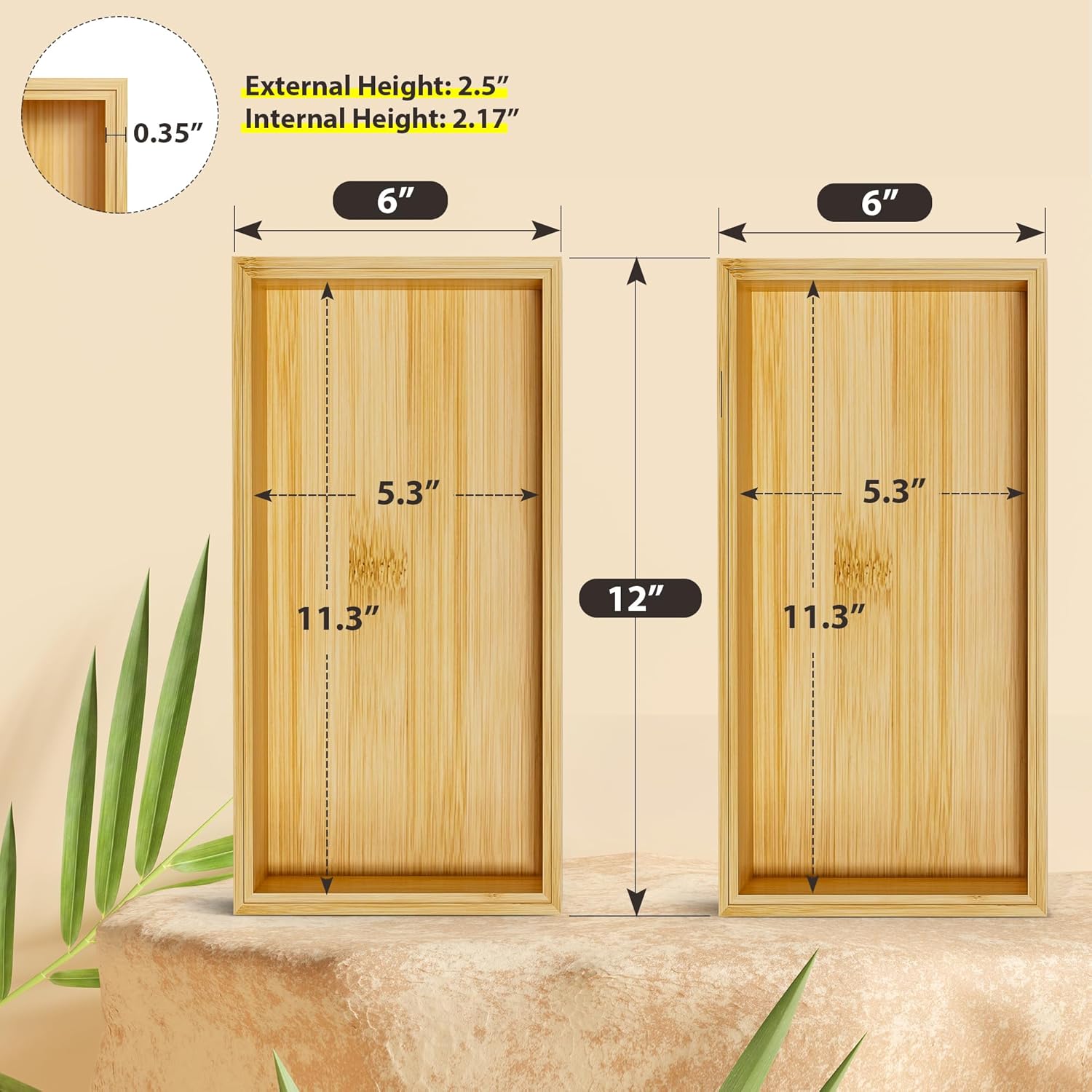 Kitchen Drawer Organizer Bins, Stackable Bamboo Drawer Organizer for Silverware, Flatware, Coffee Pod Organizer K Cup Holder for Countertop, 2 Pcs Coffee Station Organizer 12" x 6" x 2.5"