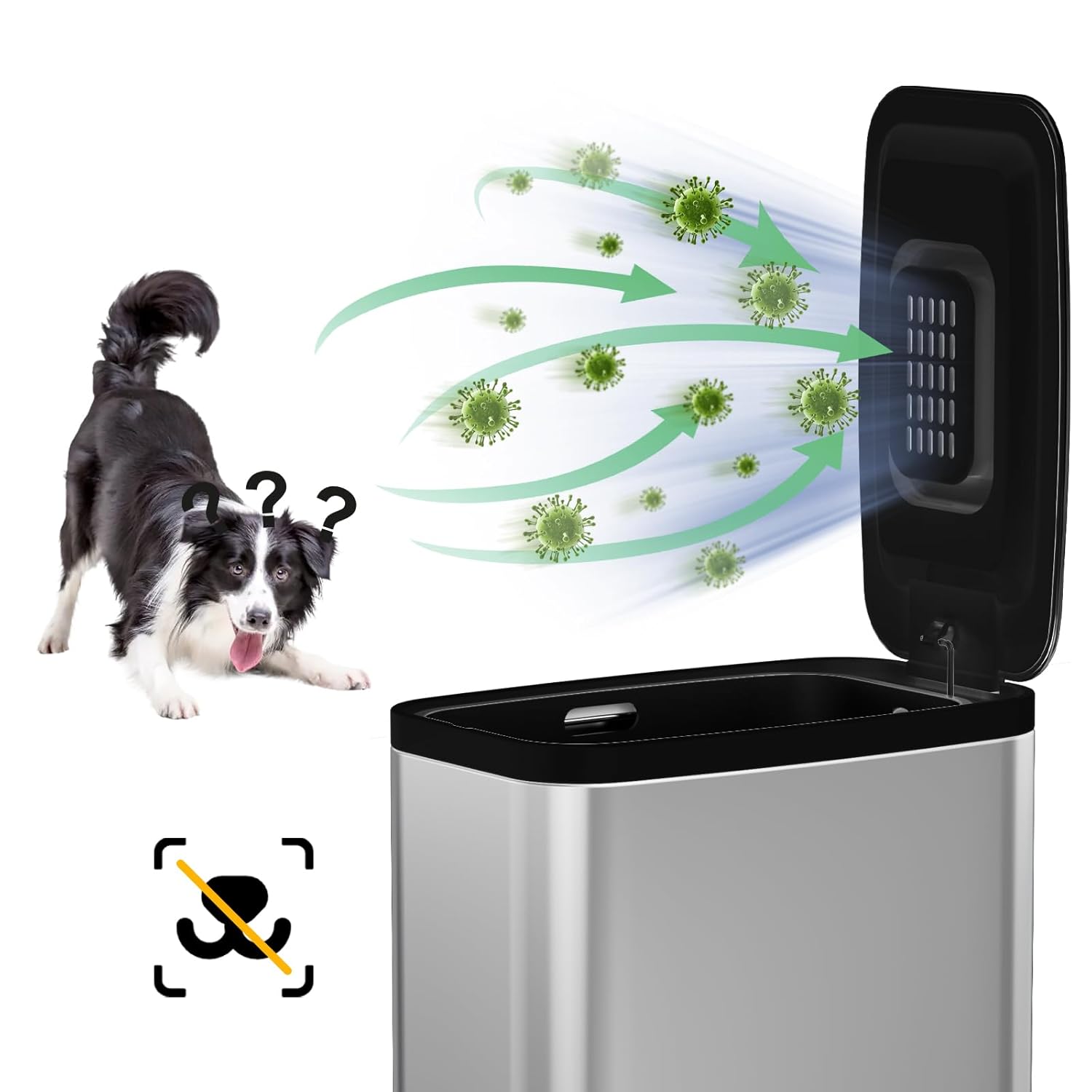 • Waterproof & Easy to Clean-Stainless steel trash can does not rust and the surface is anti-fingerprint, It can be easily cleaned with a simple wipe, ensuring a fresh and clean appearance.