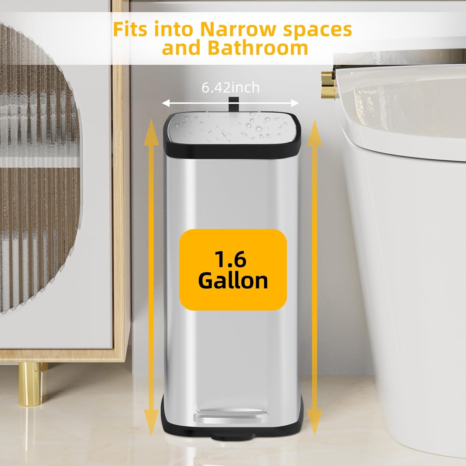• Slim Design-Small Bathroom Trash Can with Lid perfect for narrow places.