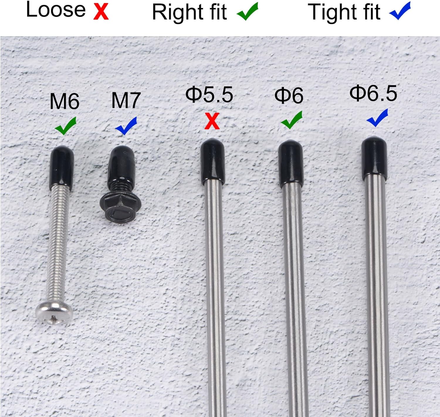 • 【Size Selection】Because rubber material is soft and elastic, we recommend choosing rubber end cap that is slightly smaller than the outer diameter of the product to be protected. For example: the outer diameter of your product is 9.8mm dia, choose the rubber cover of 9.5mm!