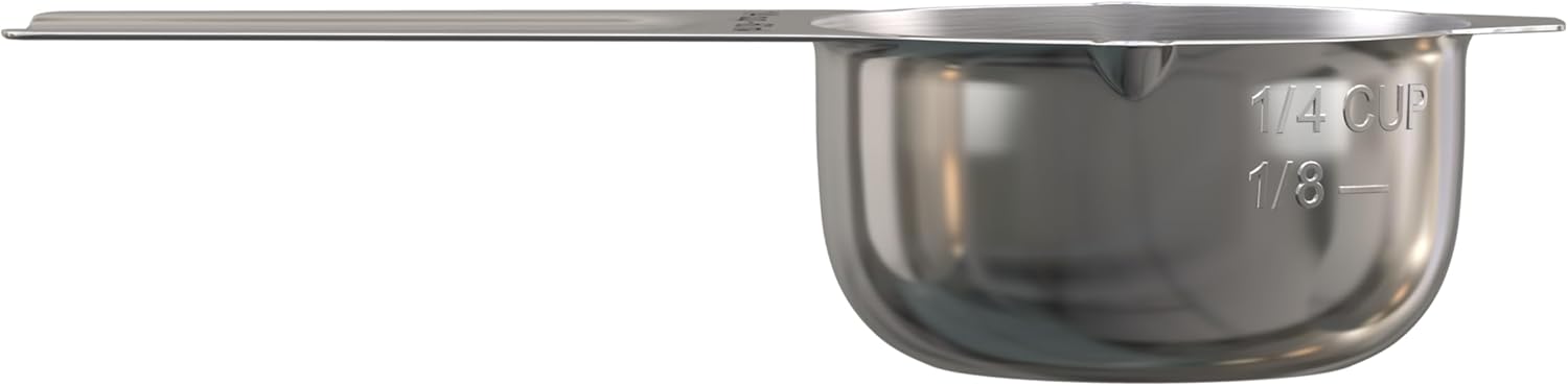 • Seamless ¼-Cup Measuring Cup, One-Piece Construction – Zero rivets or welds for a smooth surface that’s simple to clean and resists grime buildup—a long-lasting addition to any kitchen.