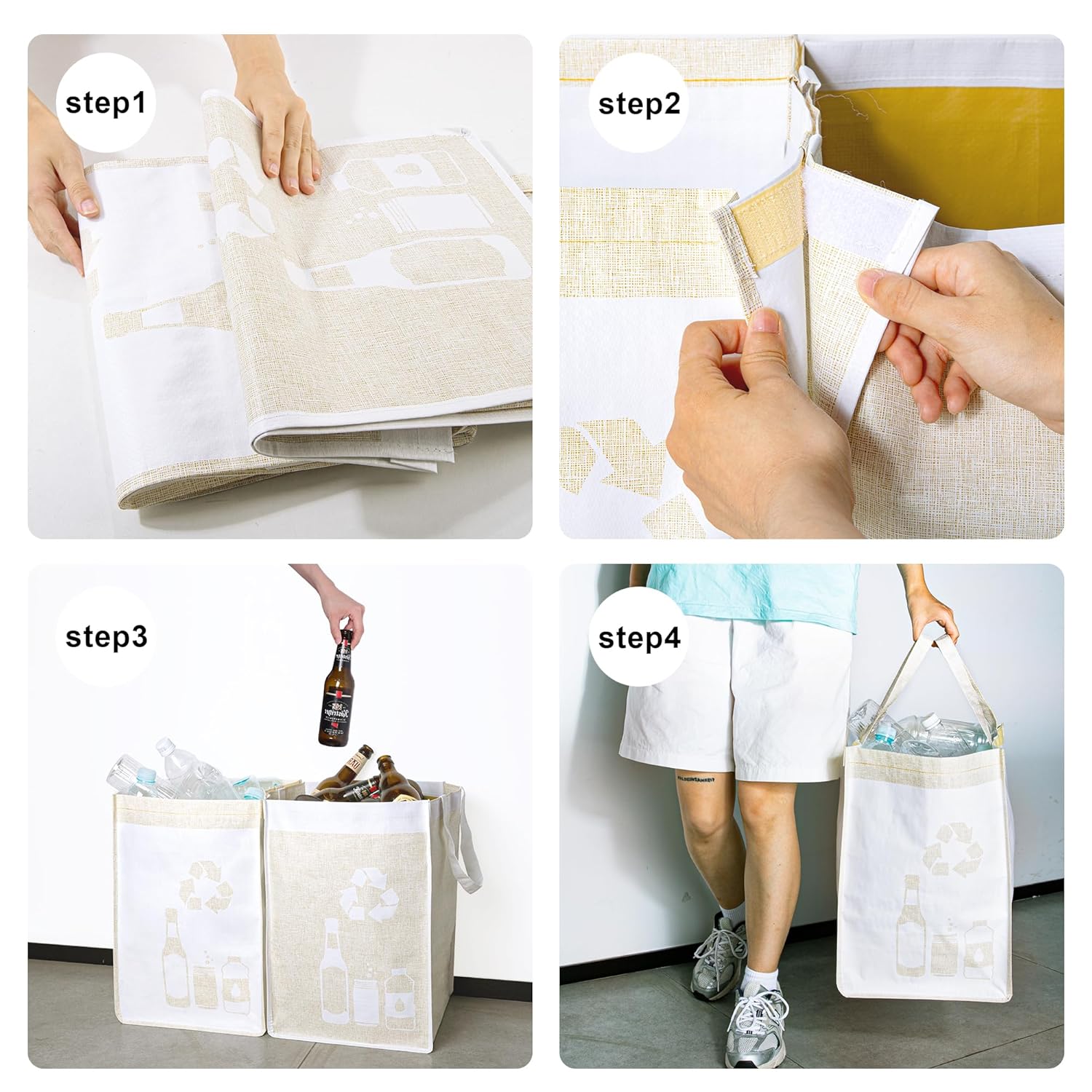 Recycle Waste Bag for Kitchen Home- Indoor Recycling Bins Trash Sorting Organizer, Reusable and Waterproof, Yellow, 4 Pack