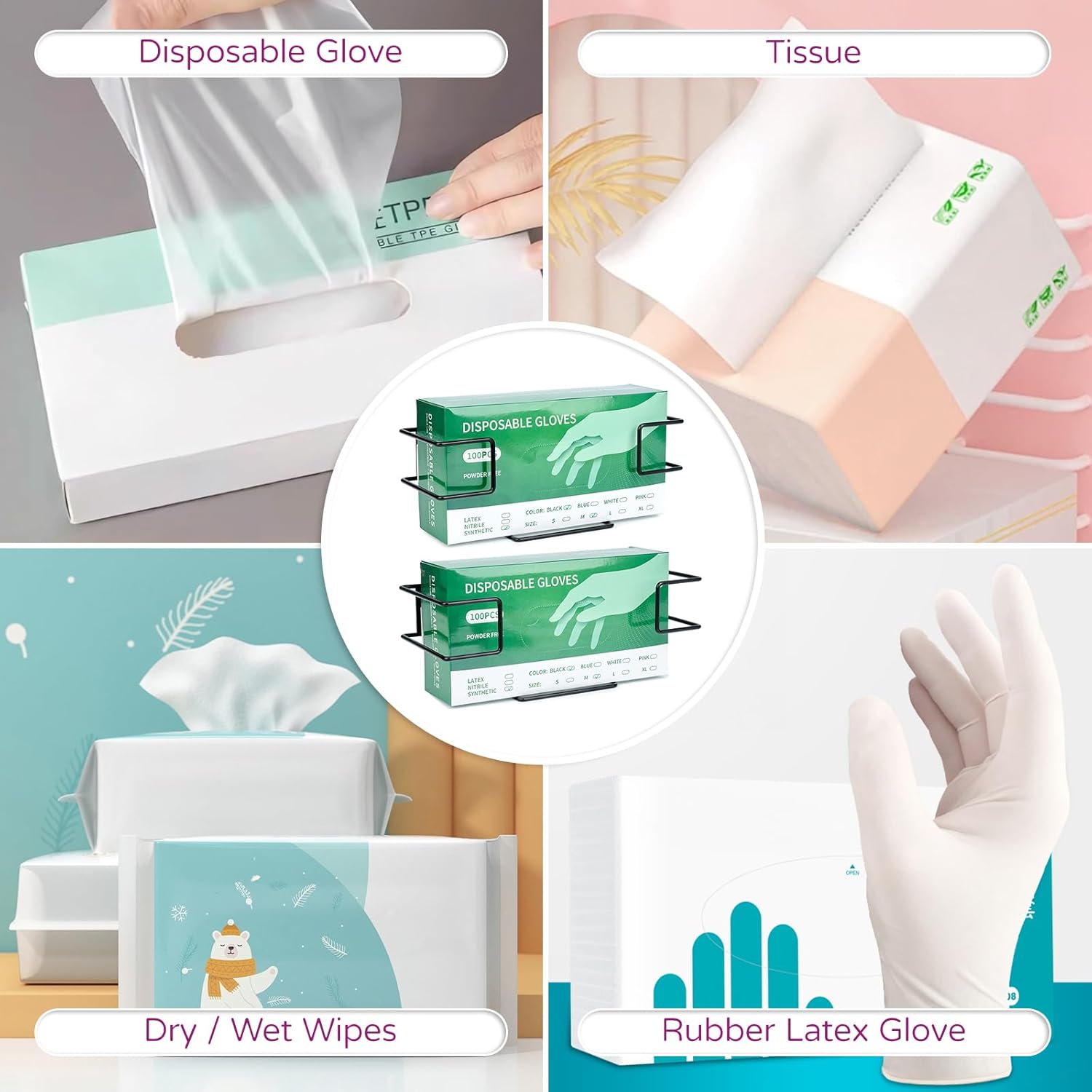 • Not Just Designed for Gloves: The holder can also be used to hold tissues, dry / wet wipes, plastic ziplock bags, trash bag and more. Suitable for kitchen, garage, lab, hospital, food service, salon, etc.