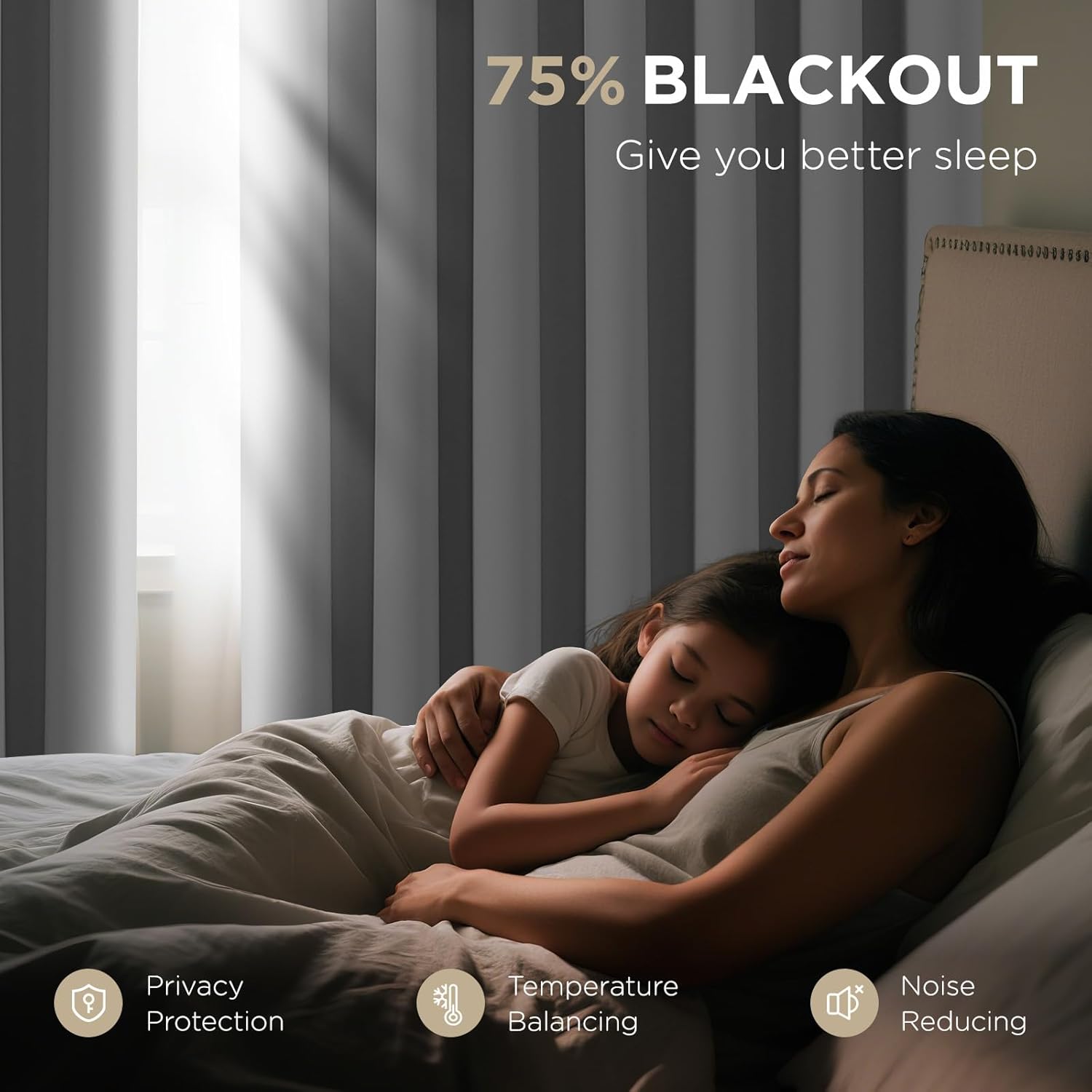 • 【Blackout Performance】Your go-to choice for adjusting indoor light! These curtains block over 75% of sunlight and outdoor glare, creating a cozier atmosphere in bedrooms, living rooms, and more. They also provide excellent privacy protection for your home. Pro Tip: Darker-colored curtains offer even better blackout effects.​