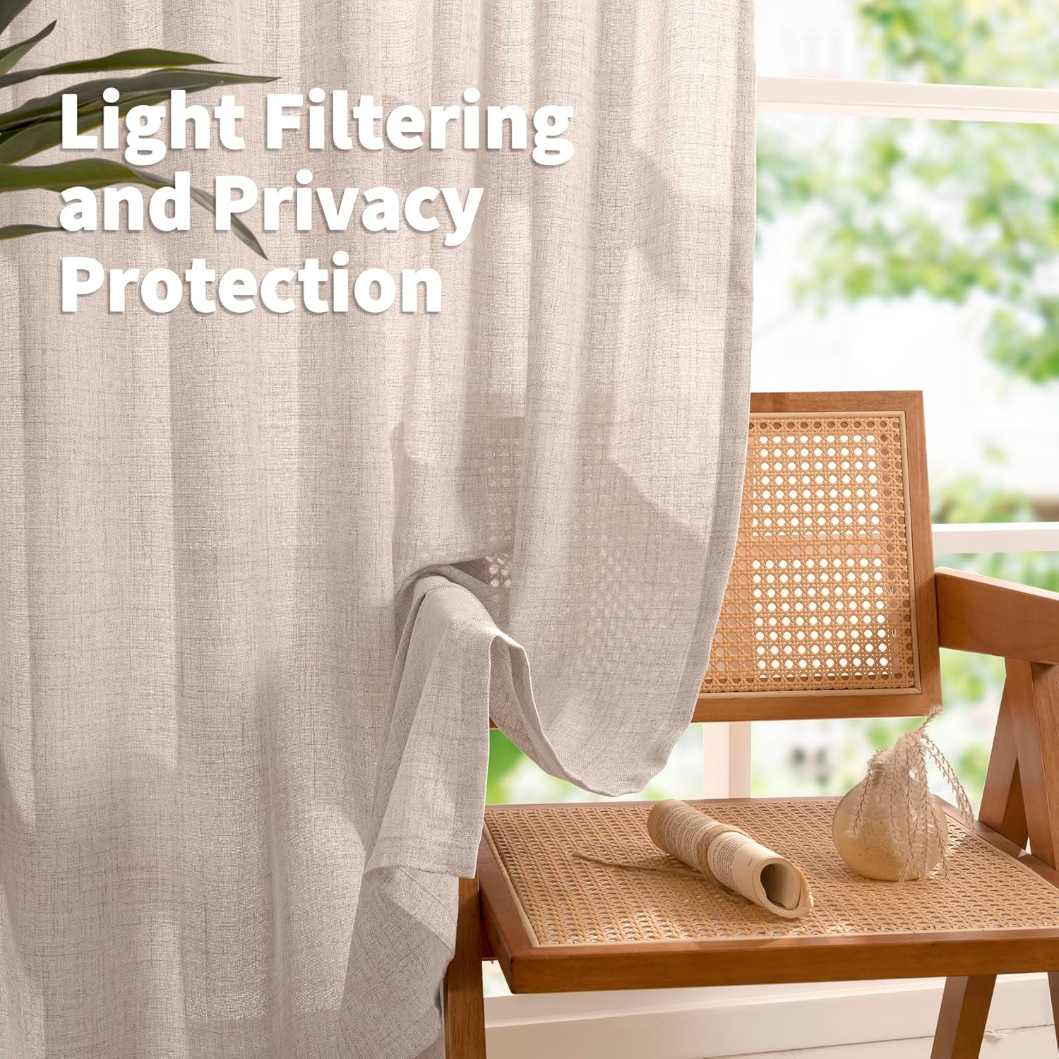 • Privacy Protection: Different from ordinary sheer drapes, our linen curtains are woven with a firmer and thicker texture that filters harsh light, while nice thickness helps provide privacy. Subtly balancing light and privacy that allow you to enjoy your leisure time.