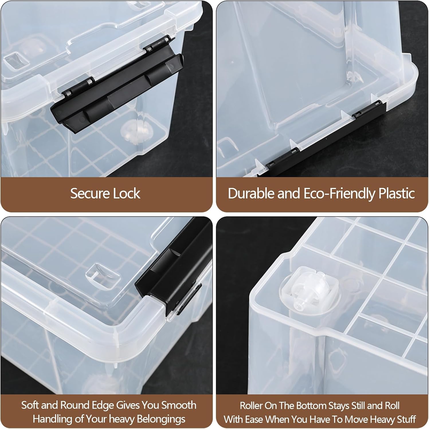 Zopnny 24 Quart Clear Plastic Storage Bin with Lid, Stackable Organizer Latch Box Tote for Home, Garage, School, and Office, 4-Pack