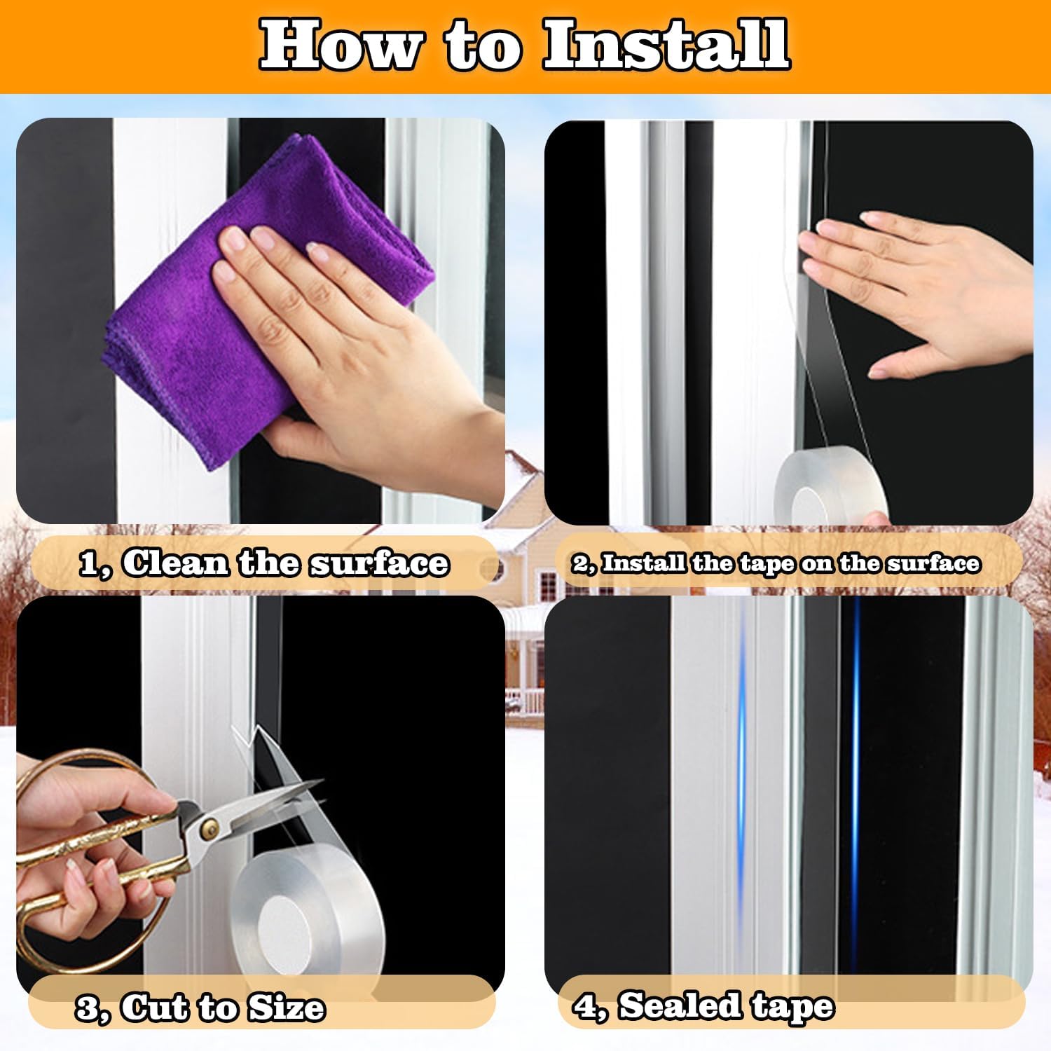 • Strong Adhesive but surface safe adesive: Transparent weather sealing tape is made of high-quality, weather-resistant materials that can withstand extreme temperatures, moisture, and DIY repair to sealing on windows,doors. Sticks strongly while being residue-free, removable and surface-safe