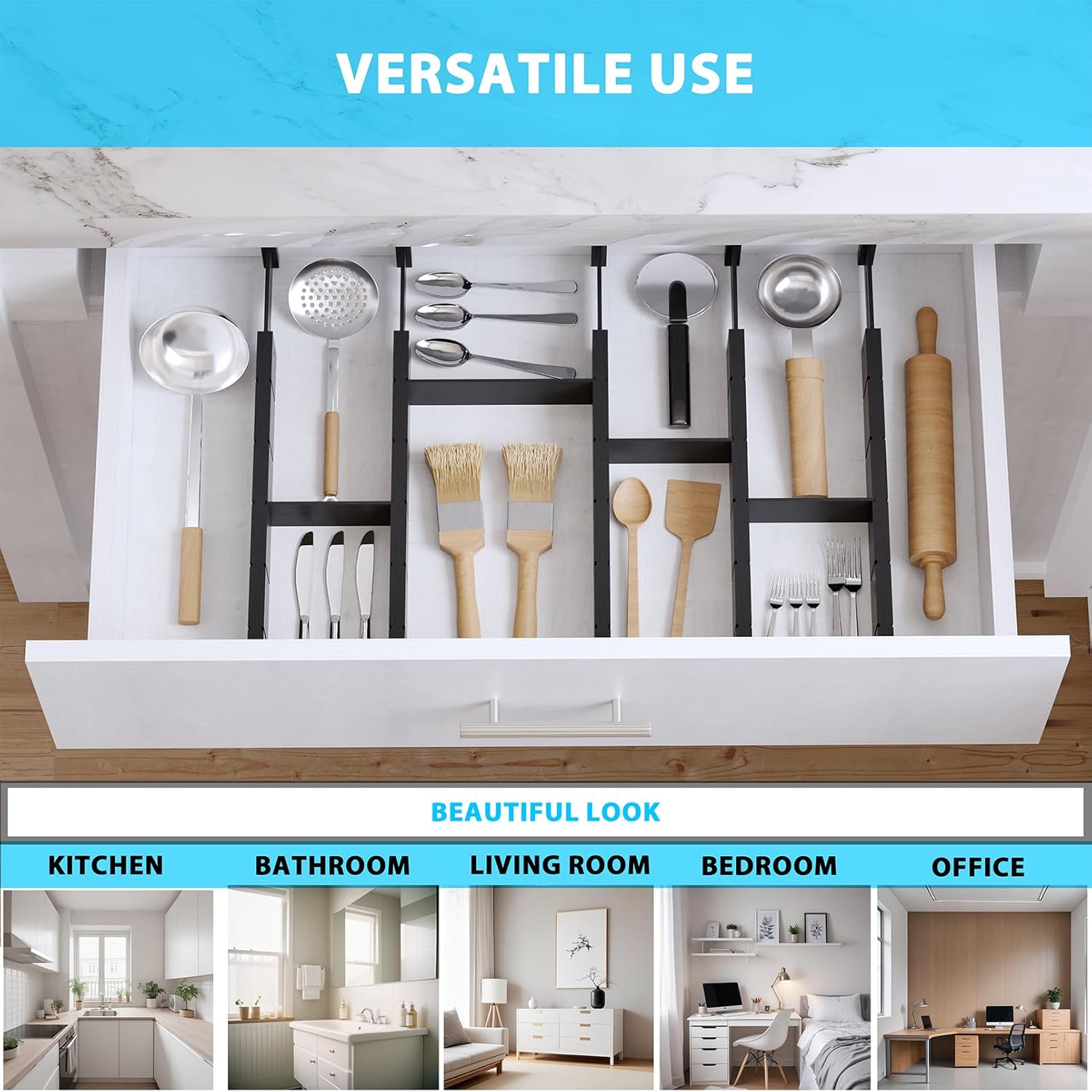 • DRAWER FRIENDLY DESIGN: The ends of our drawer dividers feature non-slip pads to keep them in place and protect your drawers from scratches, keeping your utensils, clothes and cosmetics safe enough