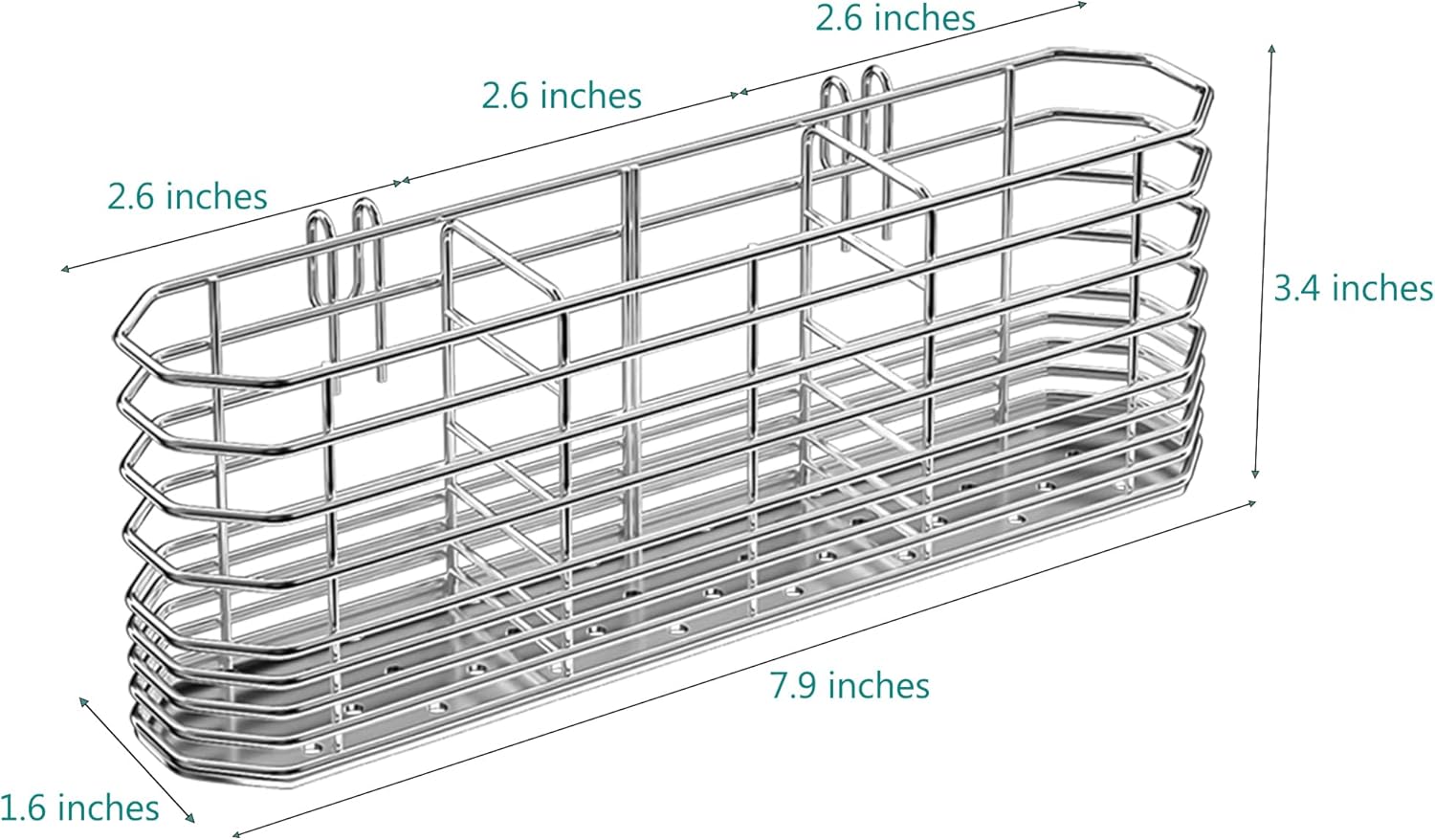 304 Stainless Steel Utensil Holder, Dish Drying Rack, kitchen Utensil Organizer, Knife and Fork Drainage Rack, Kitchen Drainage Basket Accessories, With Hooks, Rust Proof, Color-Silver
