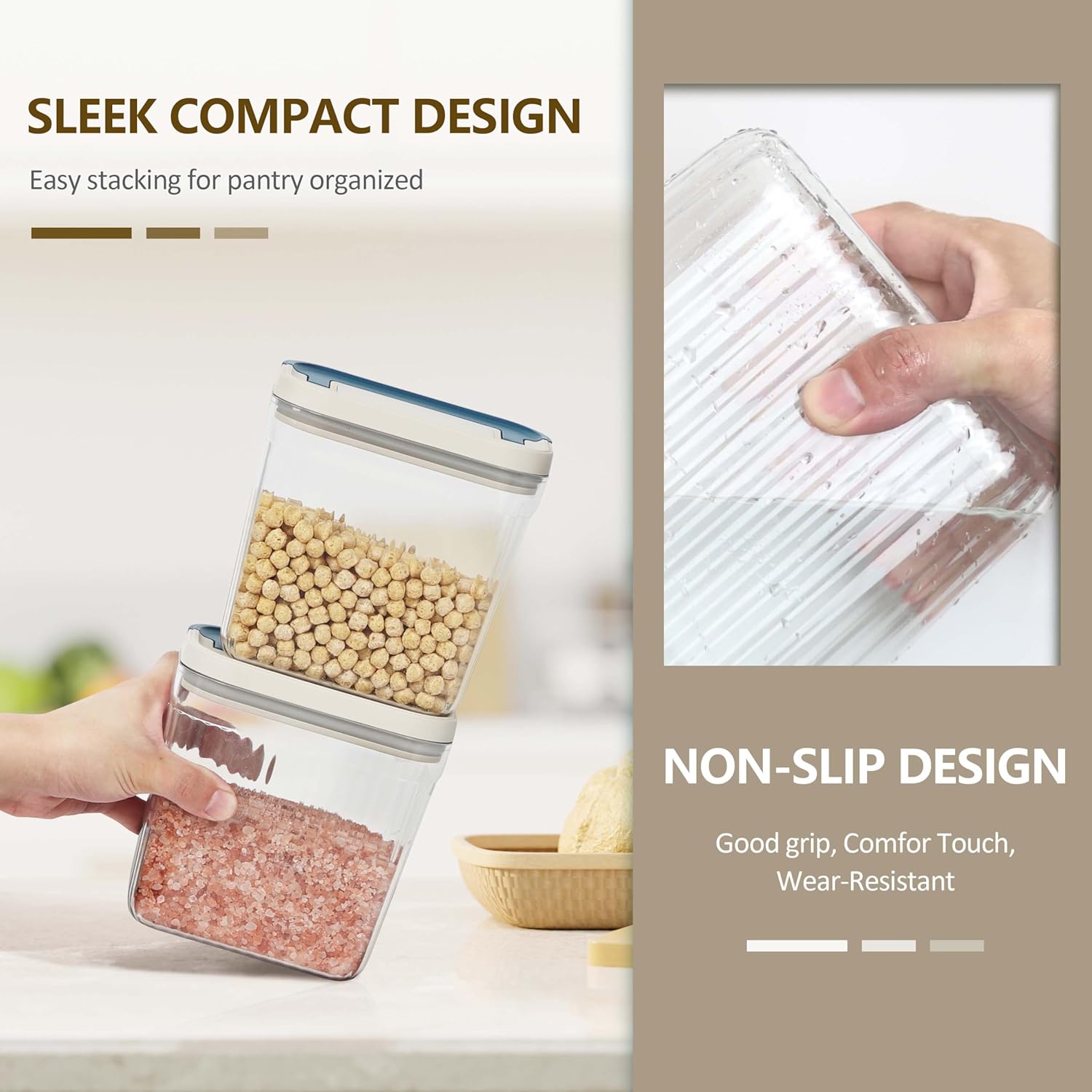 • Elegant Design and Practicality: With a sleek white and blue color scheme, these PET canisters add a touch of elegance to your kitchen decor. The clear body allows for easy monitoring of contents, while the anti-slip vertical striped surface adding grip for easy handling and storage
