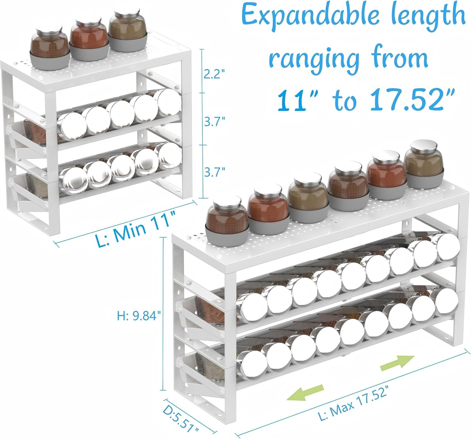 • ⭐【Flexible & Customizable Organization】Our expandable spice rack organizer offers adjustable shelves that can be positioned to fit your specific spice collection. Stackable design allows for vertical expansion, making it perfect for any cabinet, countertop, pantry, cupboard, or wall mount.