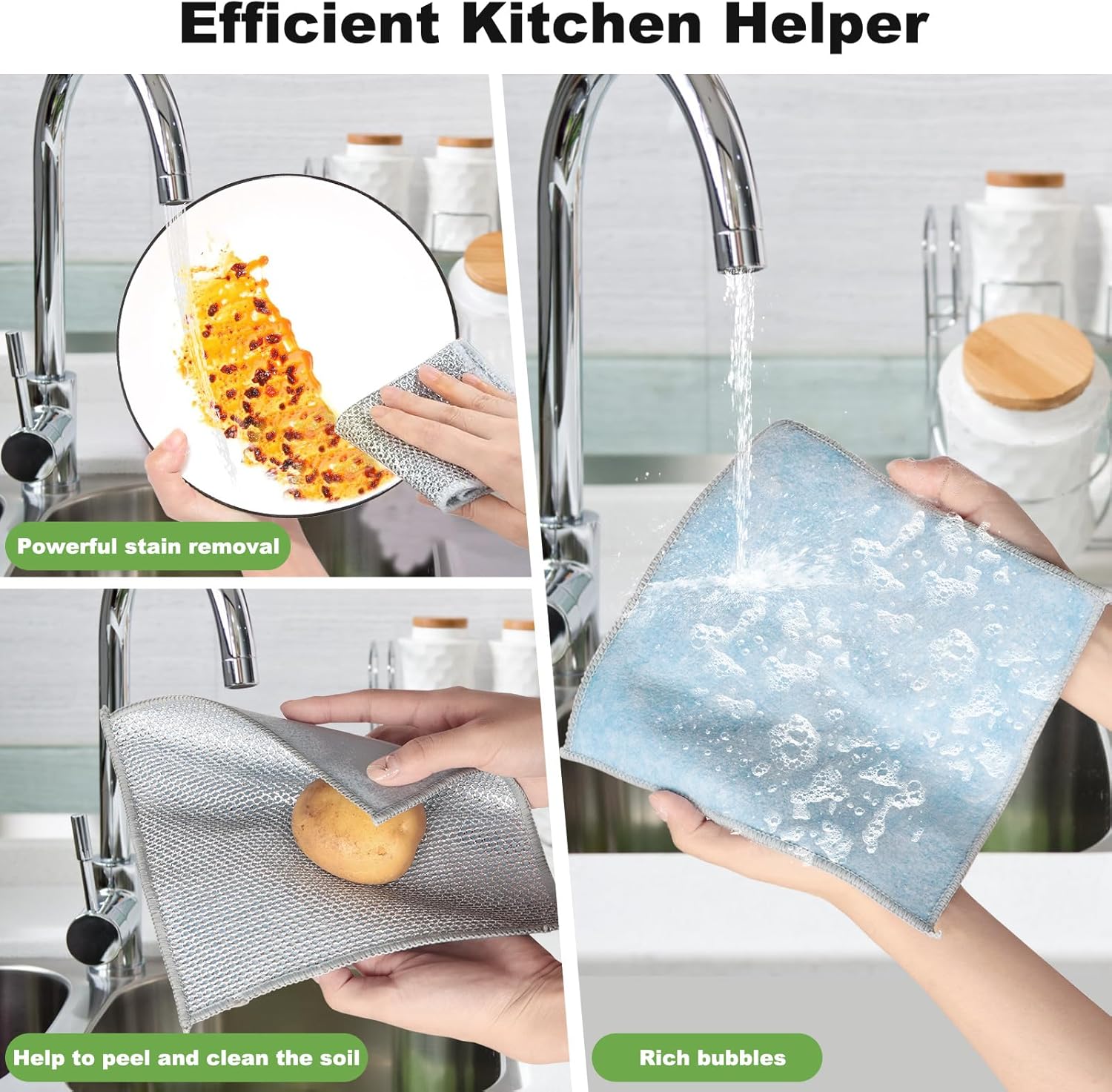 • Double-Sided Design:Jeymei wire dishwashing rag features a double-sided design, made of high-quality materials and precision stitching. Our multipurpose wire miracle cleaning cloths can be used wet or dry to easily clean surfaces like sinks, stoves, and countertops.